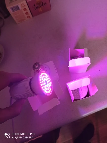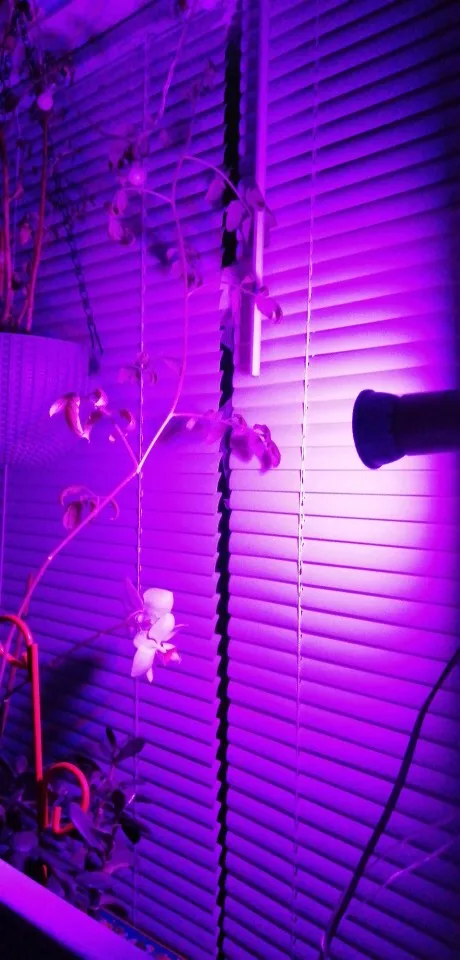 Это отличные добавки к моим комнатным растениям. Они имеют только синий и красный спектр, без белого. У меня есть другие лампы белого цвета, которые я использую с ними.