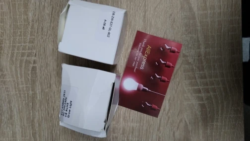 Доставка меньше месяца, коробочки немного помяты, но лампы целые, обе работают, проверила в настольной лампе