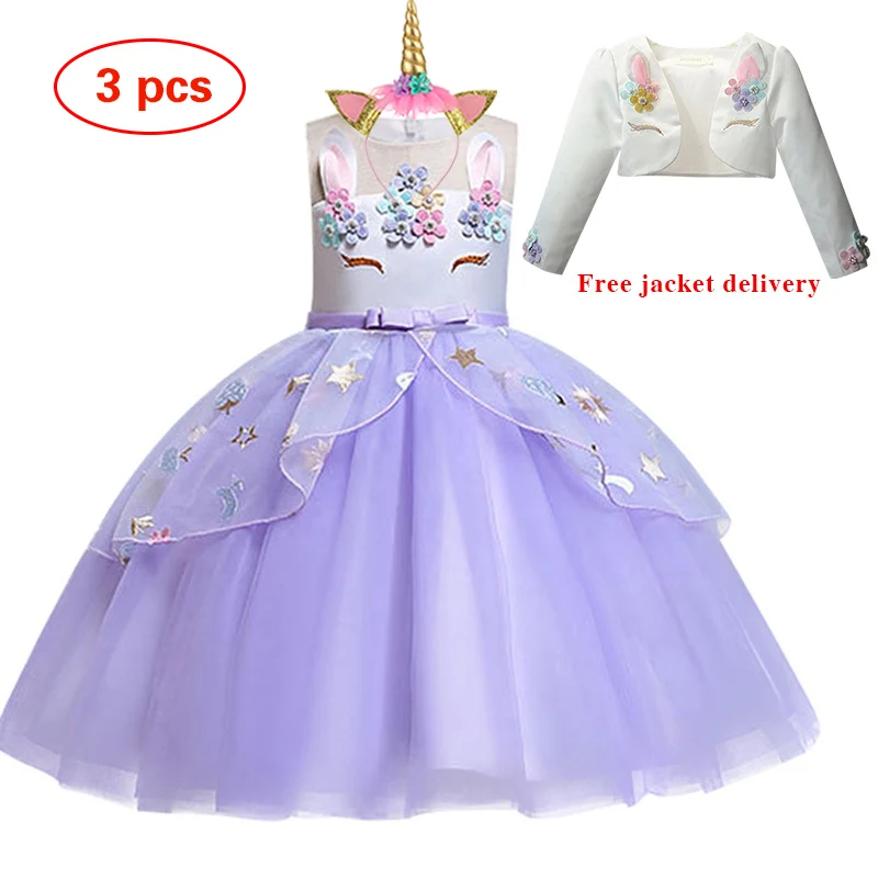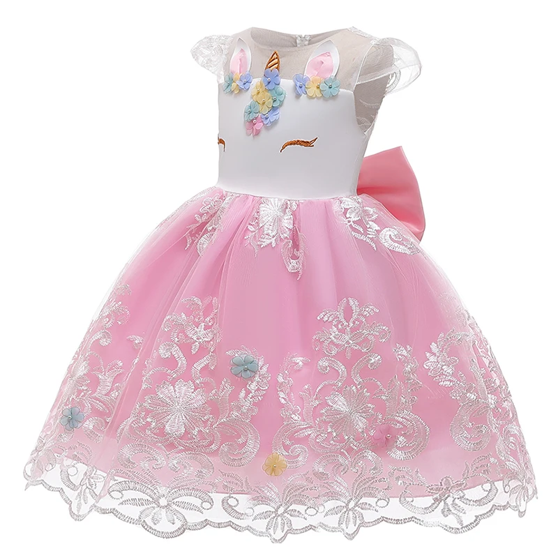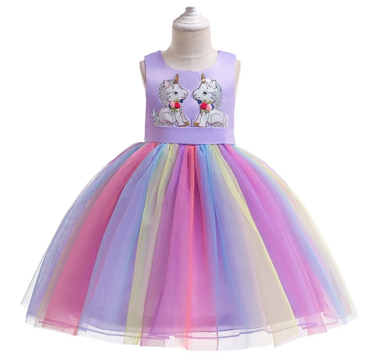 Новинка, платье с единорогом Эльзы для девочек, бальное платье с вышивкой, платья принцессы на день рождения для девочек, праздничные костюмы, детская одежда