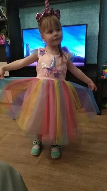 Платье очень красивое ,пришло быстро, отслежевалось полностью ,чуть позже дополню фото ,Платье очень красивое как на нас шили, внучка средняя не худая и не полная ,возраст 4.5 брала размер 5т. Товар хорошо упакован.Я довольна продавца рекомендую,буду у него ещё покупать .