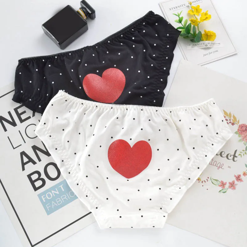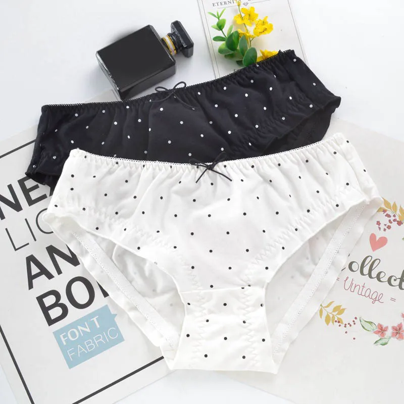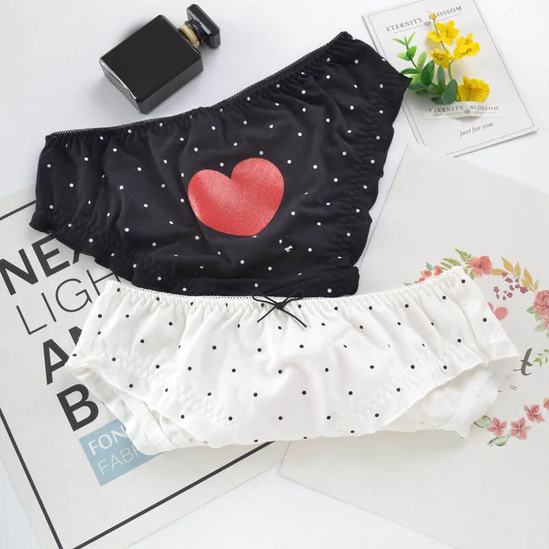 Женские хлопковые трусики в горошек с принтом сердца, милое дамское нижнее белье с заниженной талией, женские трусики с оборками, женское нижнее белье