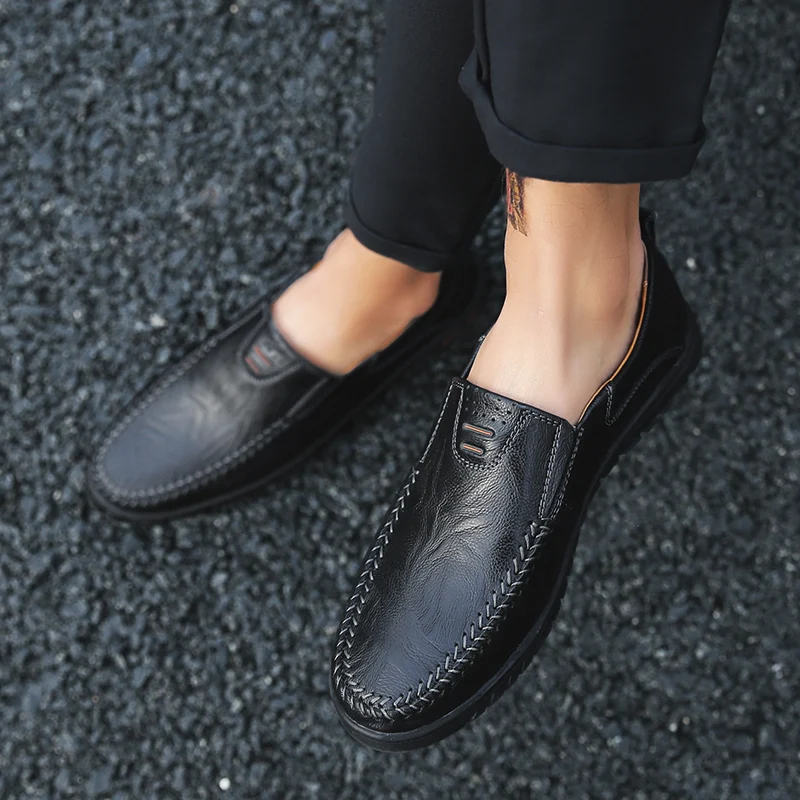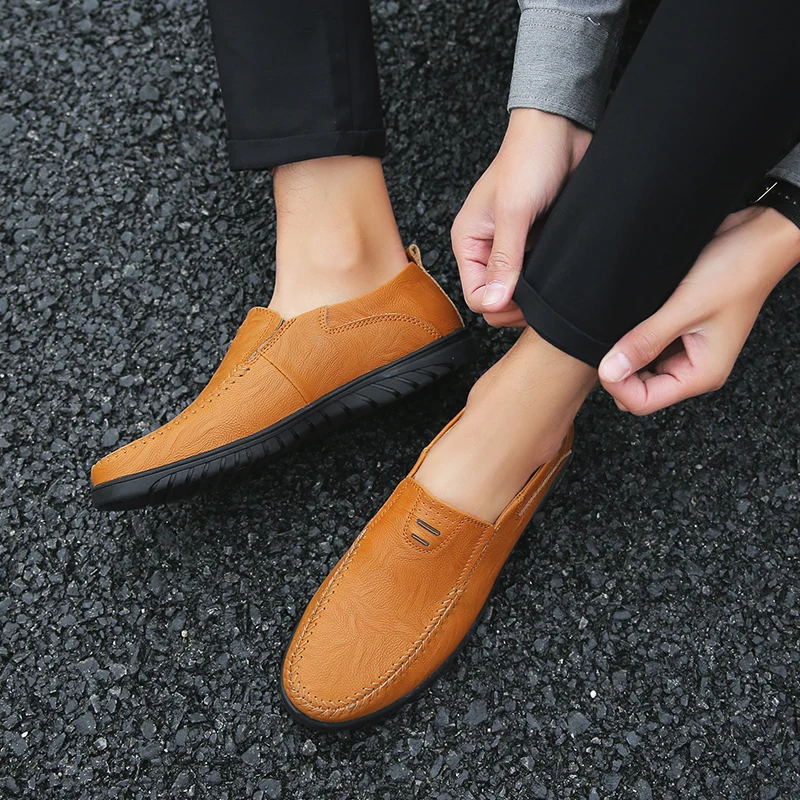 Мокасины JKPUDUN мужские из натуральной кожи, лоферы, без застежки,...