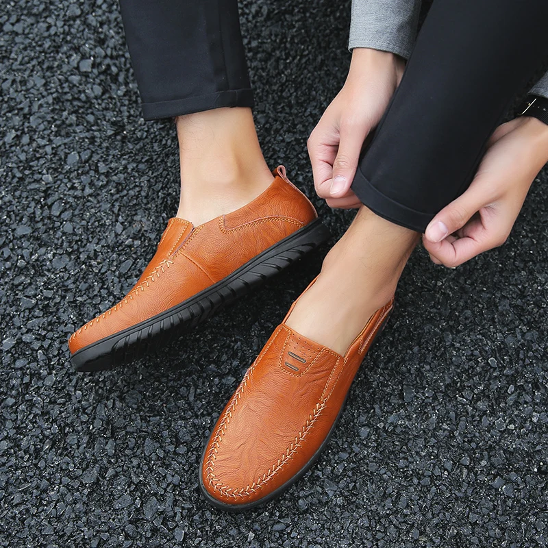 Мужские кожаные кроссовки, дышащие легкие Мокасины, ручная работа, ...
