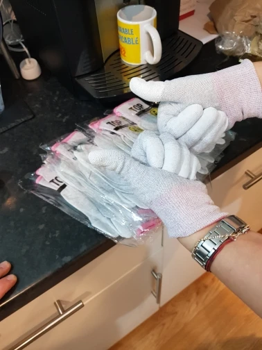 Размер L подходит для моей руки (19 см в длину, 22 см в ширину). Вид как в описании. Еще не использовали его для работы.