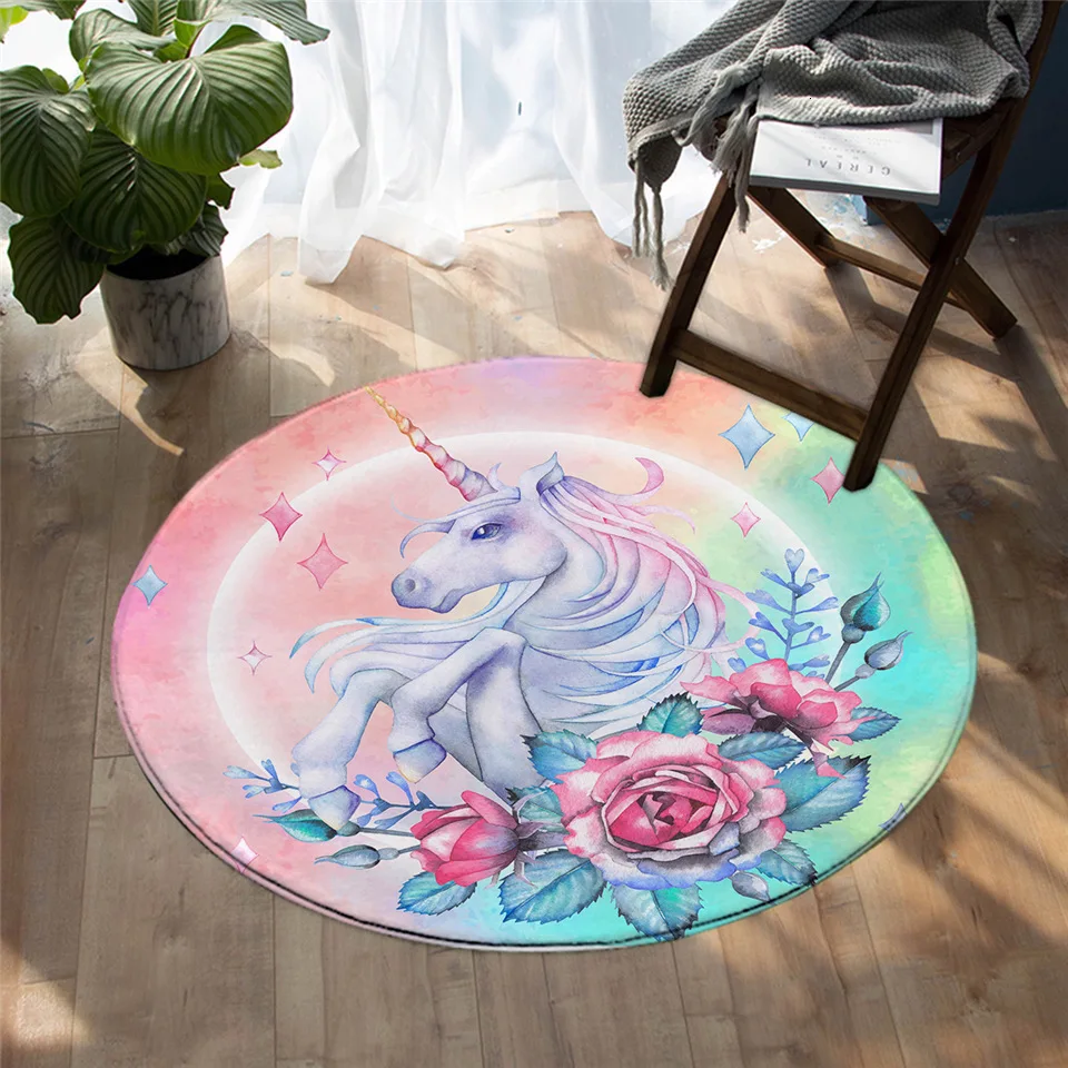 BeddingOutlet Радужный Единорог, ковры для спальни, мультяшный круглый коврик для гостиной, Цветочный напольный ковер для девочки, игровой коврик 150 см