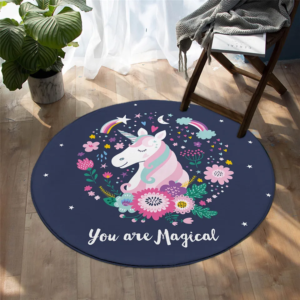 BeddingOutlet милый круглый ковер с единорогом, мультяшный детский ...