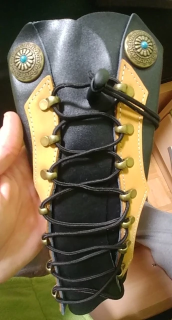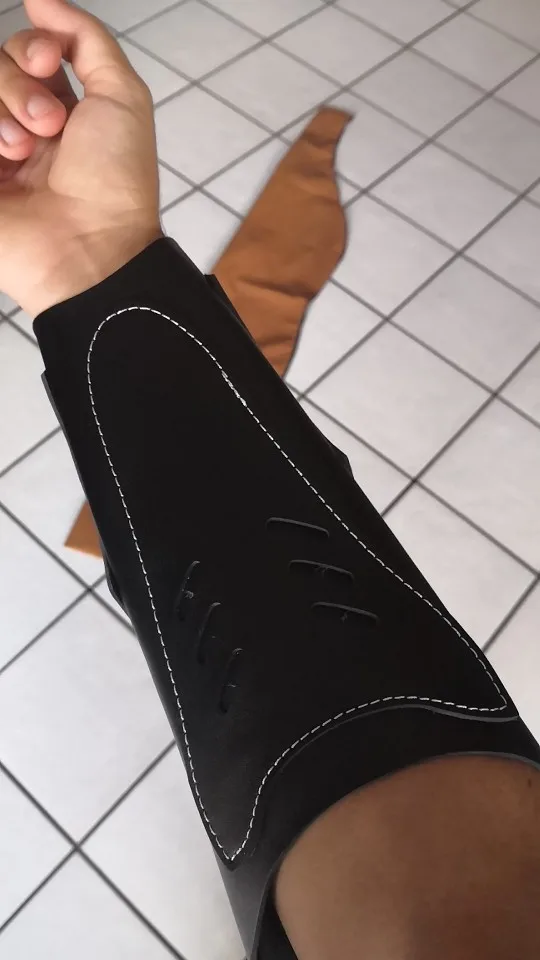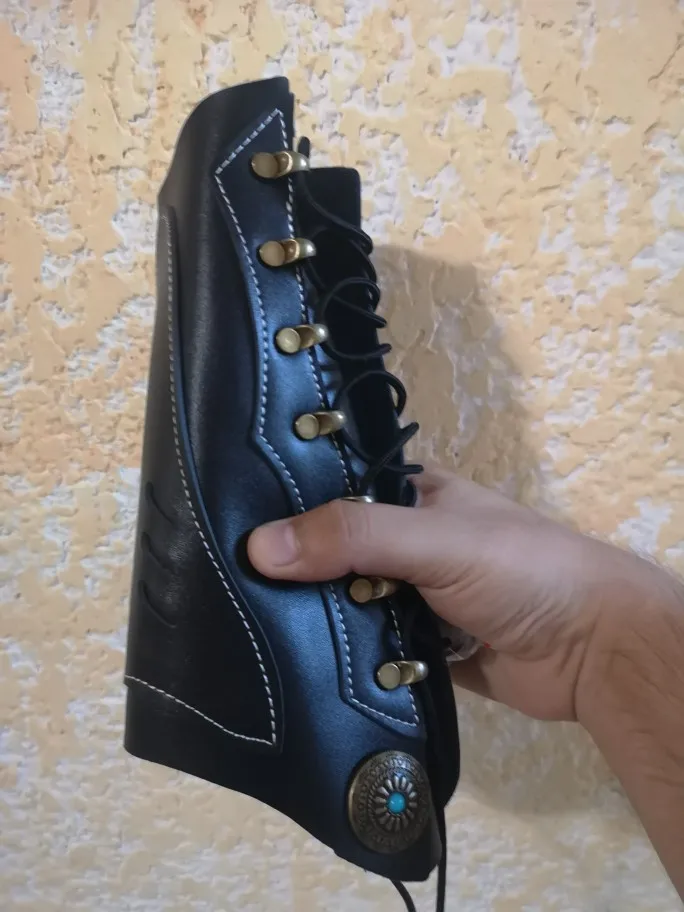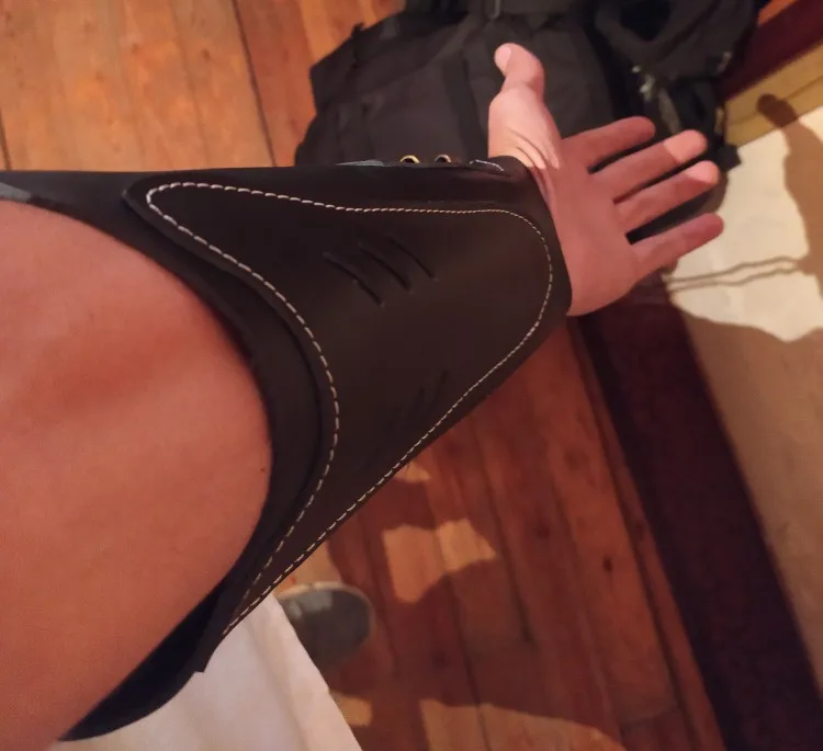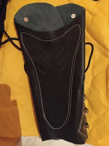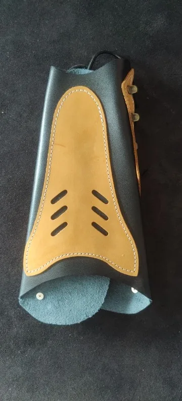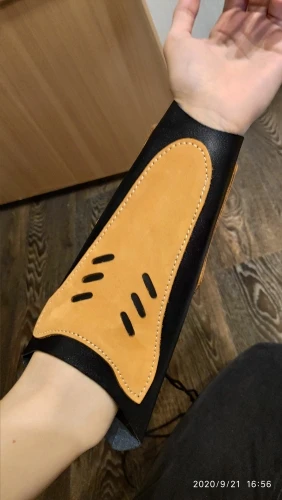Защита рук для ослабления поддержки указательного пальца. Эластичная фиксация указательного пальца сломалась во время испытания, возможно, до малого. На пусковом положении, защита не является лучшим с некоторым риском повреждения указательным пальцем, восстановил дополнительный кусок кожи как защиту после указательного пальца. На рукоятке пистолета, это нормально. Я думаю, что также в процессе заказа должна быть возможность заказать левую защитную пленку.