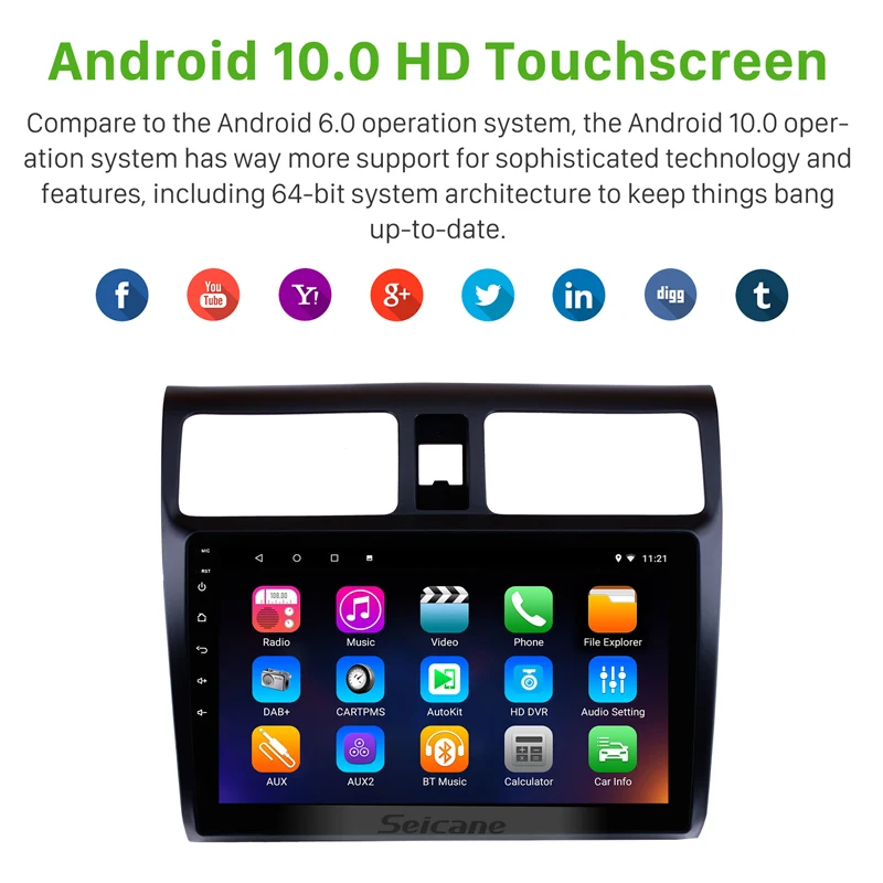 Seicane 10,1 "Android 10,0 автомобильный радиоприемник с навигацией GPS стерео проигрыватель блок для 2005-2010 идеально подходит для Suzuki SwiftПоддержка цифровой ТВ давления воздуха в шинах DVR