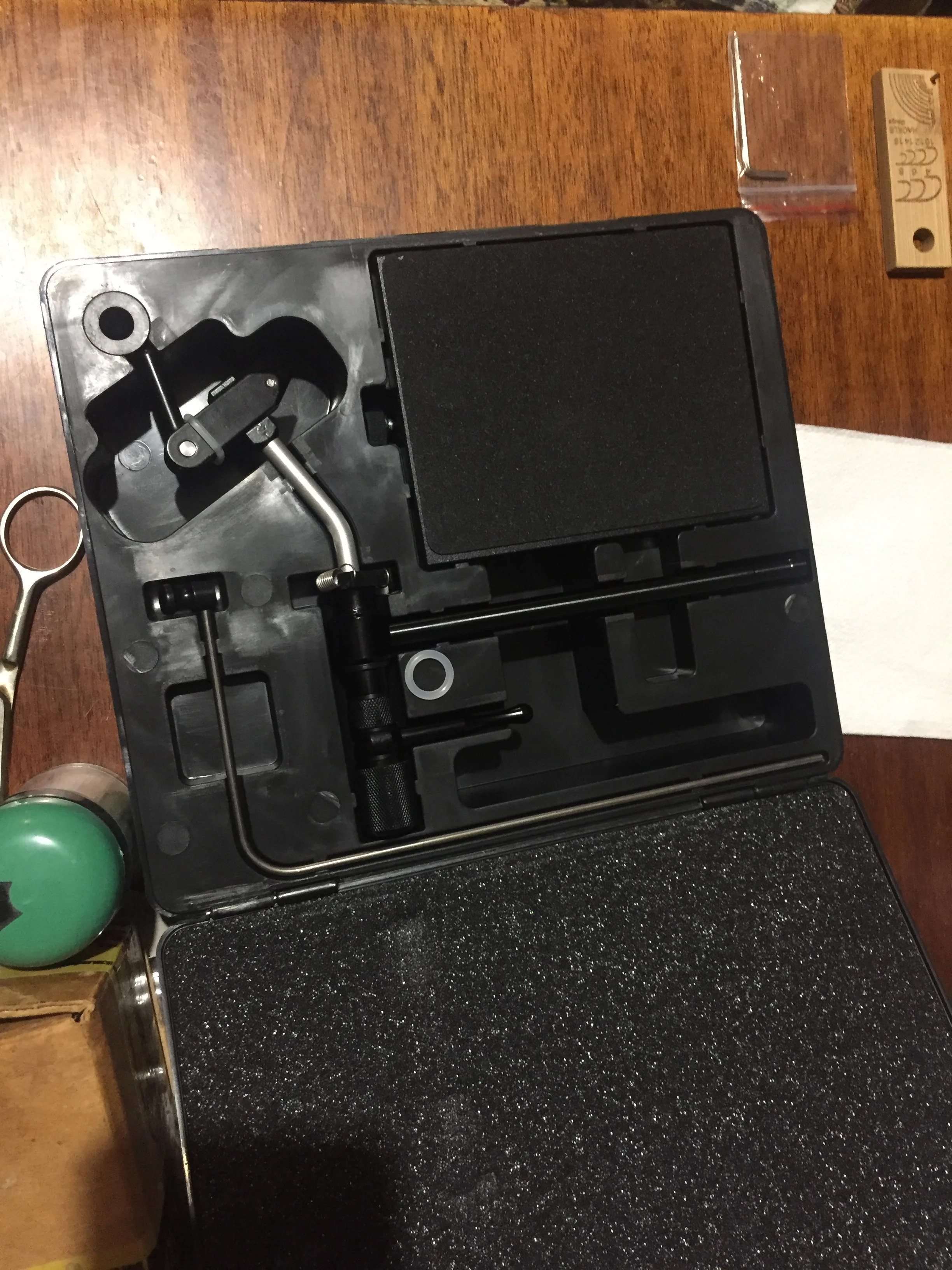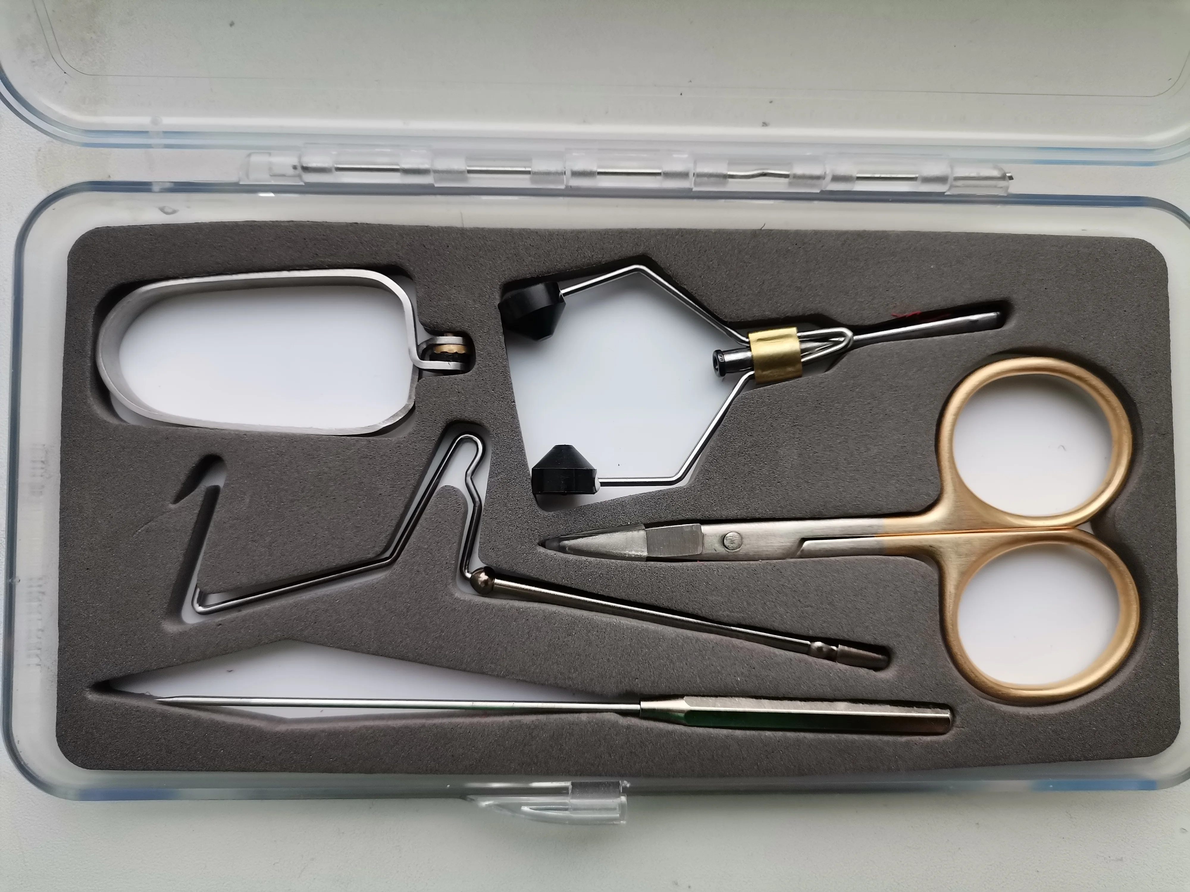 Товар получил. Всё соответствует описанию. Коробка из жёсткого, упругого пластика (на рыбалке не разбухнет и не должна разбиться при падении), но замки дрянные (открываются и закрываются очень жёстко). Брал вместе с набором инструментов (ножницы надо затягивать - нитку отрезать не возможно). Т.к. по вязанию мушек я специалист не большой, качество самого станка оценить не могу. Но всё выполнено из металла, думаю прослужит долго. За исключением мелочей, покупкой доволен, продавца рекомендую
