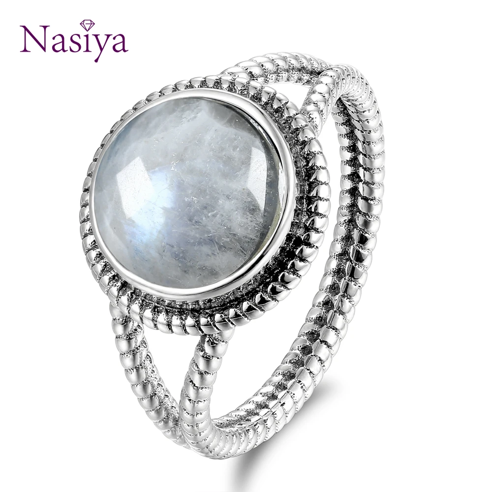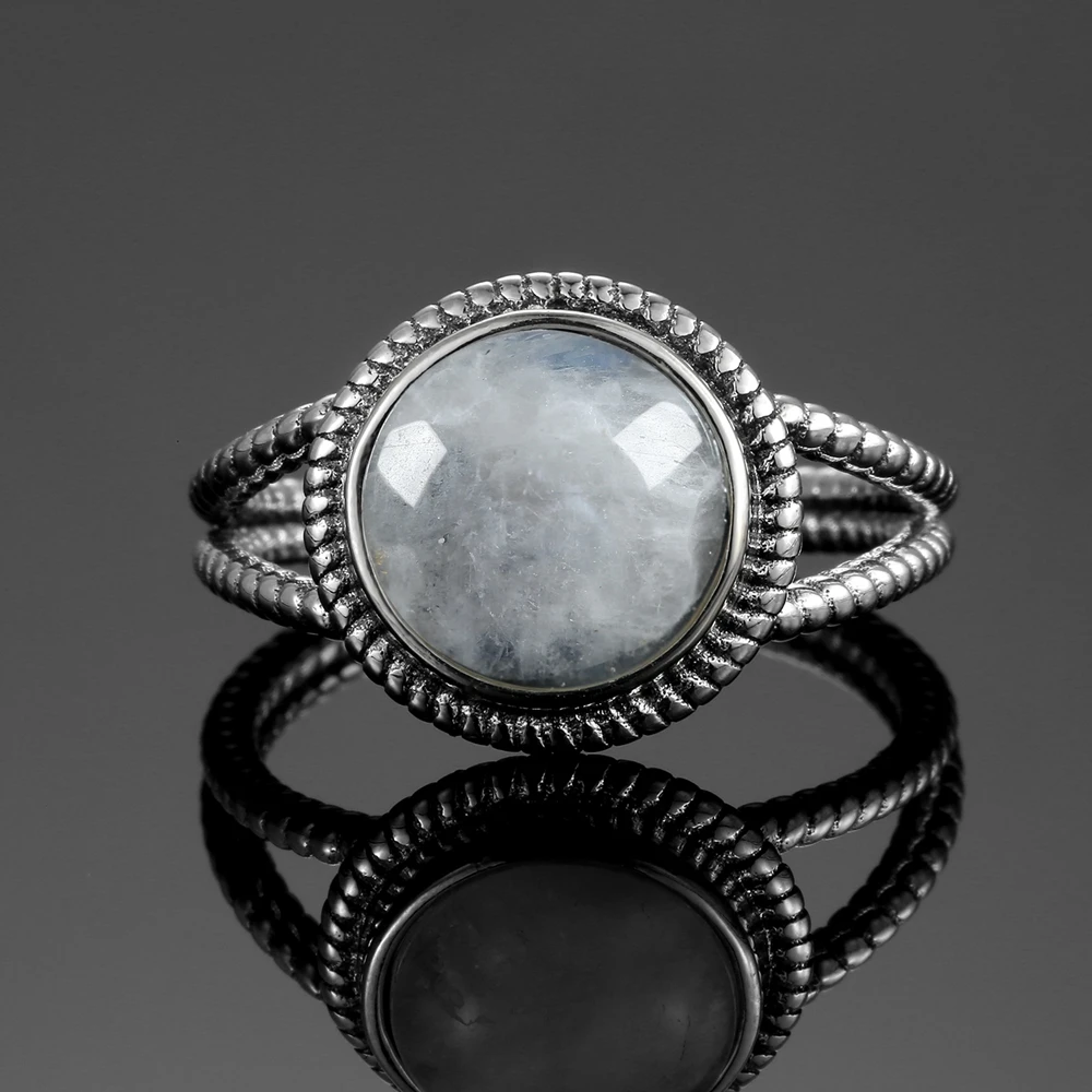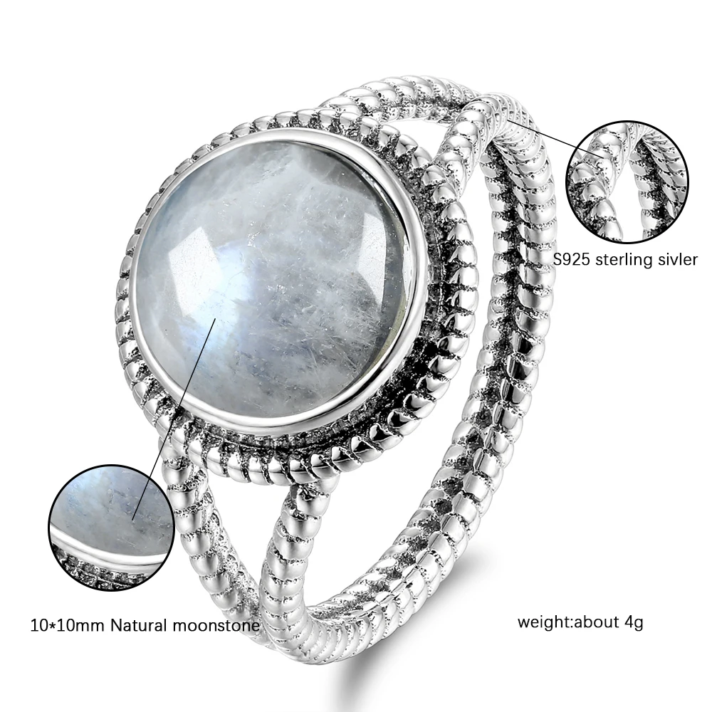 Кольцо женское из серебра 925 пробы, с натуральным лунным камнем 10 мм