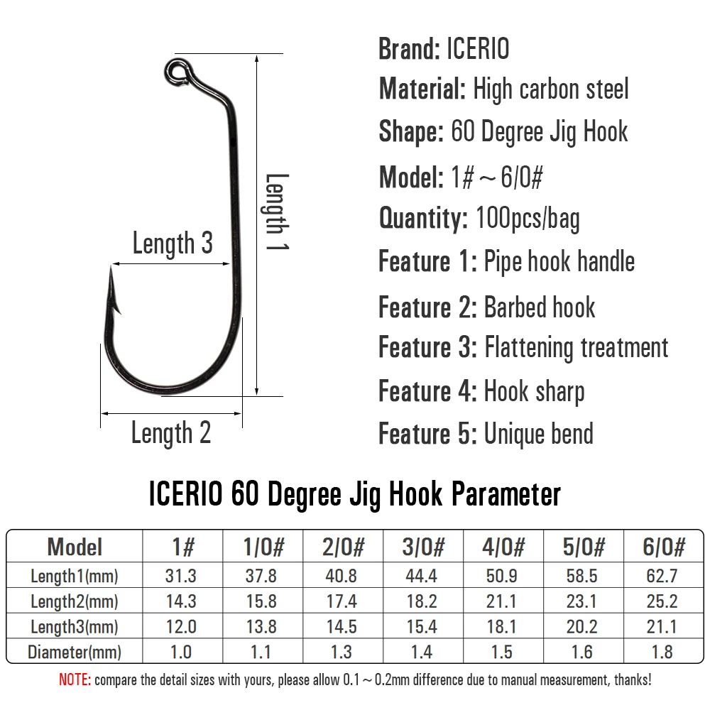 Набор крючков ICERIO, 60 градусов, 100 шт