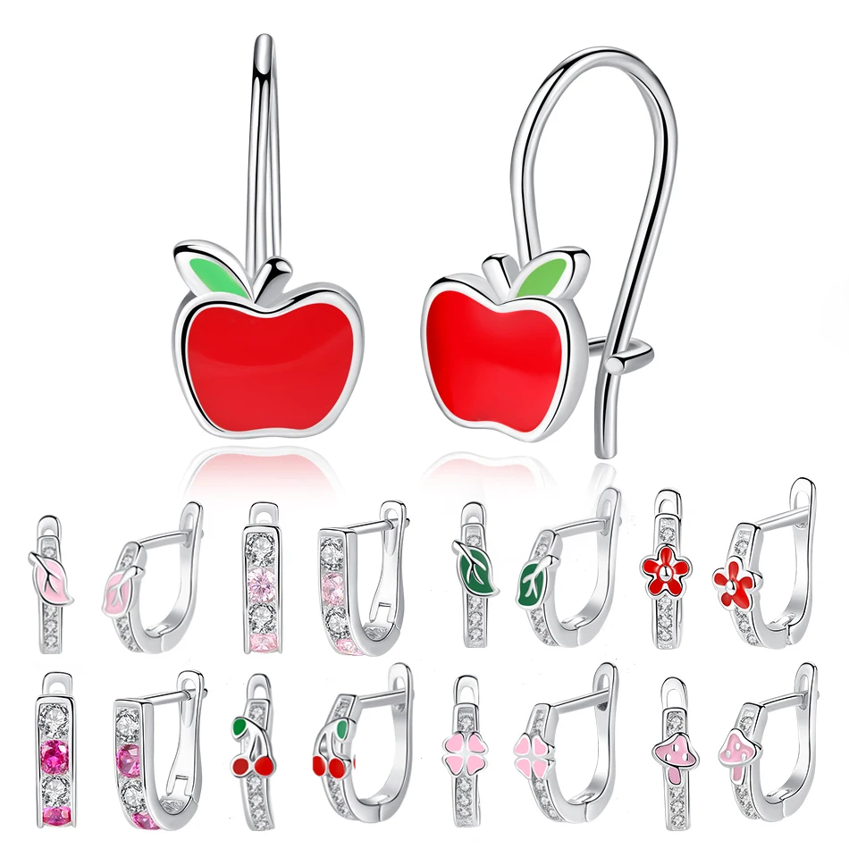 Маленькие серьги-гвоздики из 100% серебра 925 пробы с розовой и красной эмалью, с цветком и цветком клевера, детские ювелирные изделия для девочек