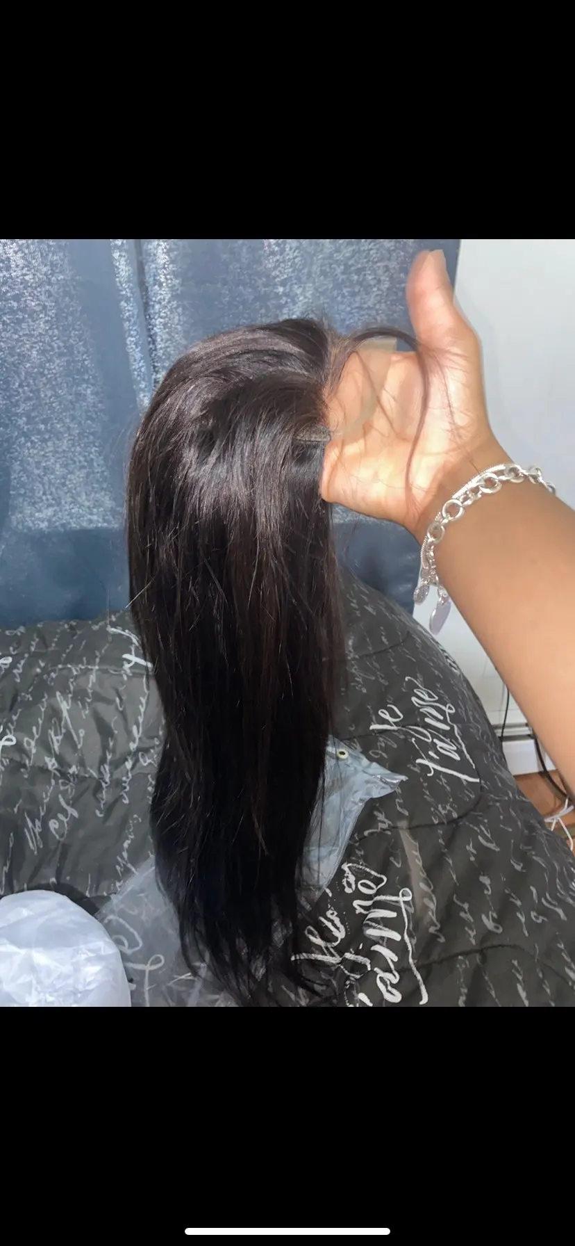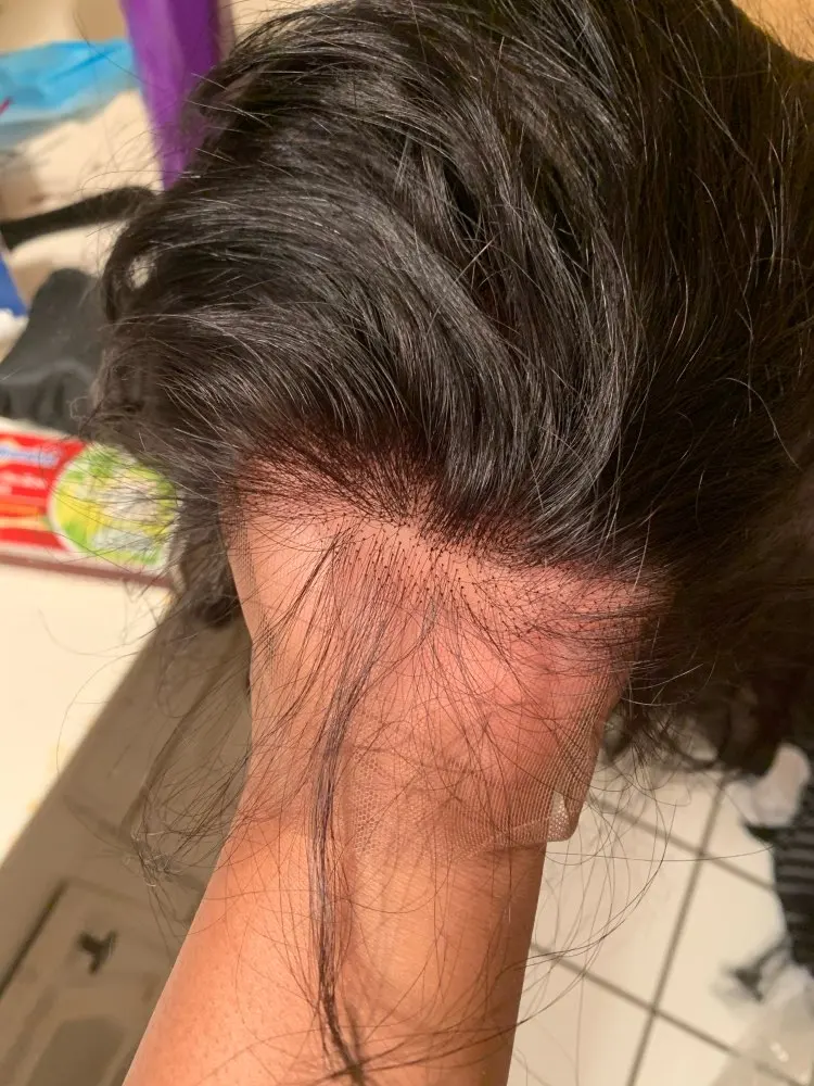 Волосы прибыли в Канаду через 7 дней. Это действительно шелковистый, верный в длину, и кружево немного пепельное с первого взгляда, но все еще легко сочетаться с тональным кремом, определенно стоит своих денег.