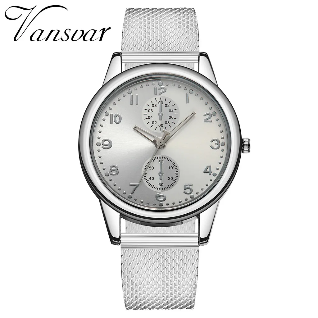 Женские наручные часы Vansvar, повседневные кварцевые часы с сеткой из серебристого и золотого цвета, модель 533, 2019