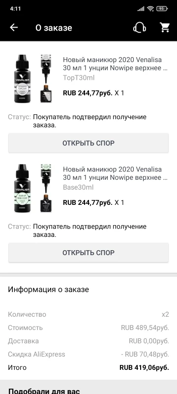 Пришёл мой долгожданный, Огромный заказ от Venalisa, я заказала набор Vip2, топ Tempered 30ml,гель 225 грамм, и много чего другого. Спасибо продавцу за быстроту отправки, за упаковку, все доставили в коробке под дверь курьером. Я в восторге!!! Всем рекомендую на 100%.