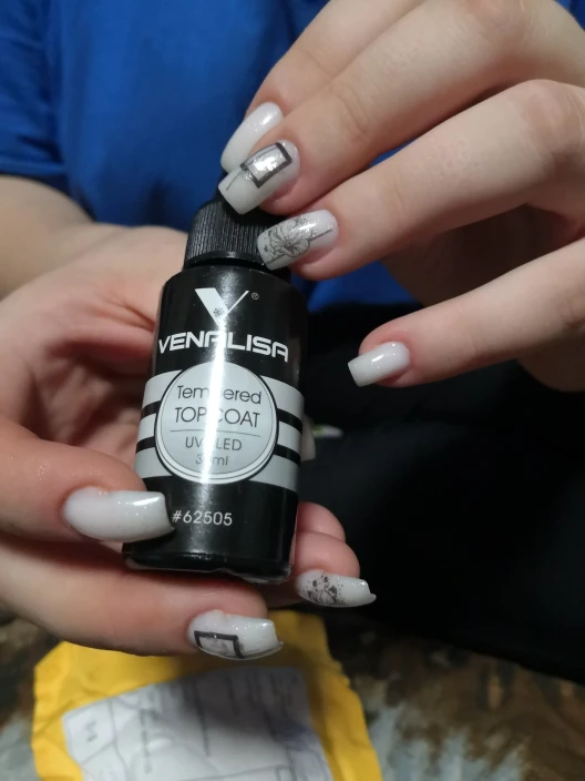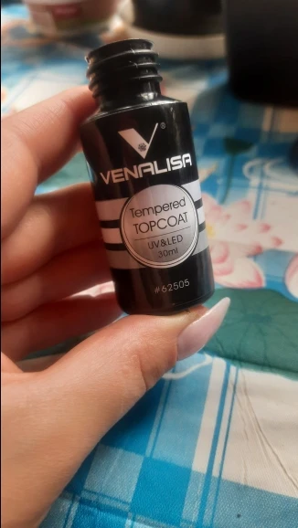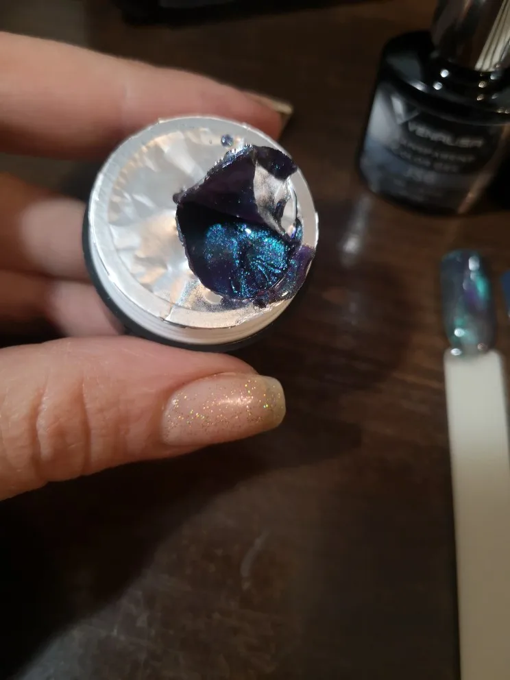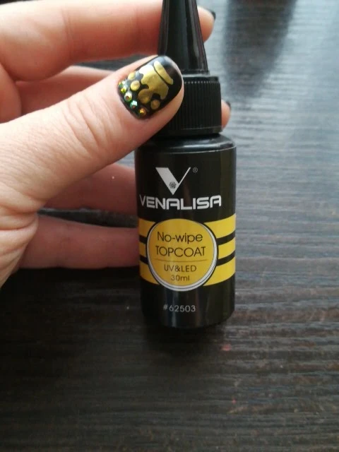 работаю только на нем!!! идеально блестит. без липкого. доставка не очень быстро, но всегда беру с запасом. обожаю его. не трескается, не скалывается. очень рекомендую,⭐⭐⭐⭐⭐