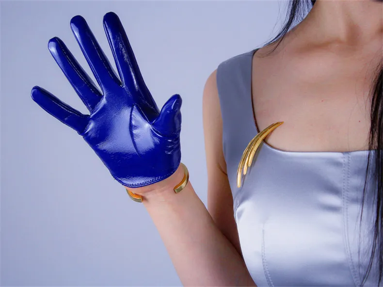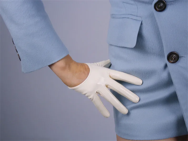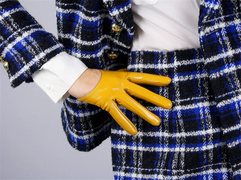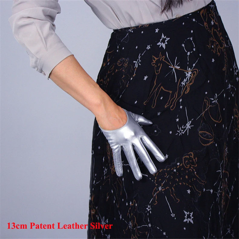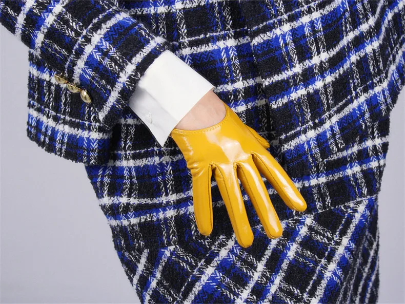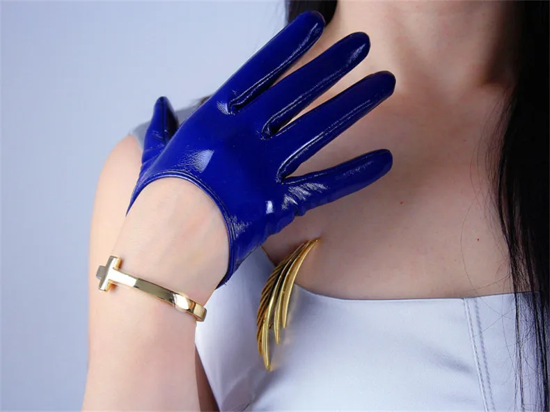 Кожаные перчатки с сенсорным экраном 13 см, Ультра короткие стильные кожаные перчатки из искусственной кожи с зеркальным покрытием, ярко-синие кобальтовые перчатки WPU116