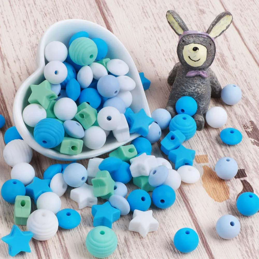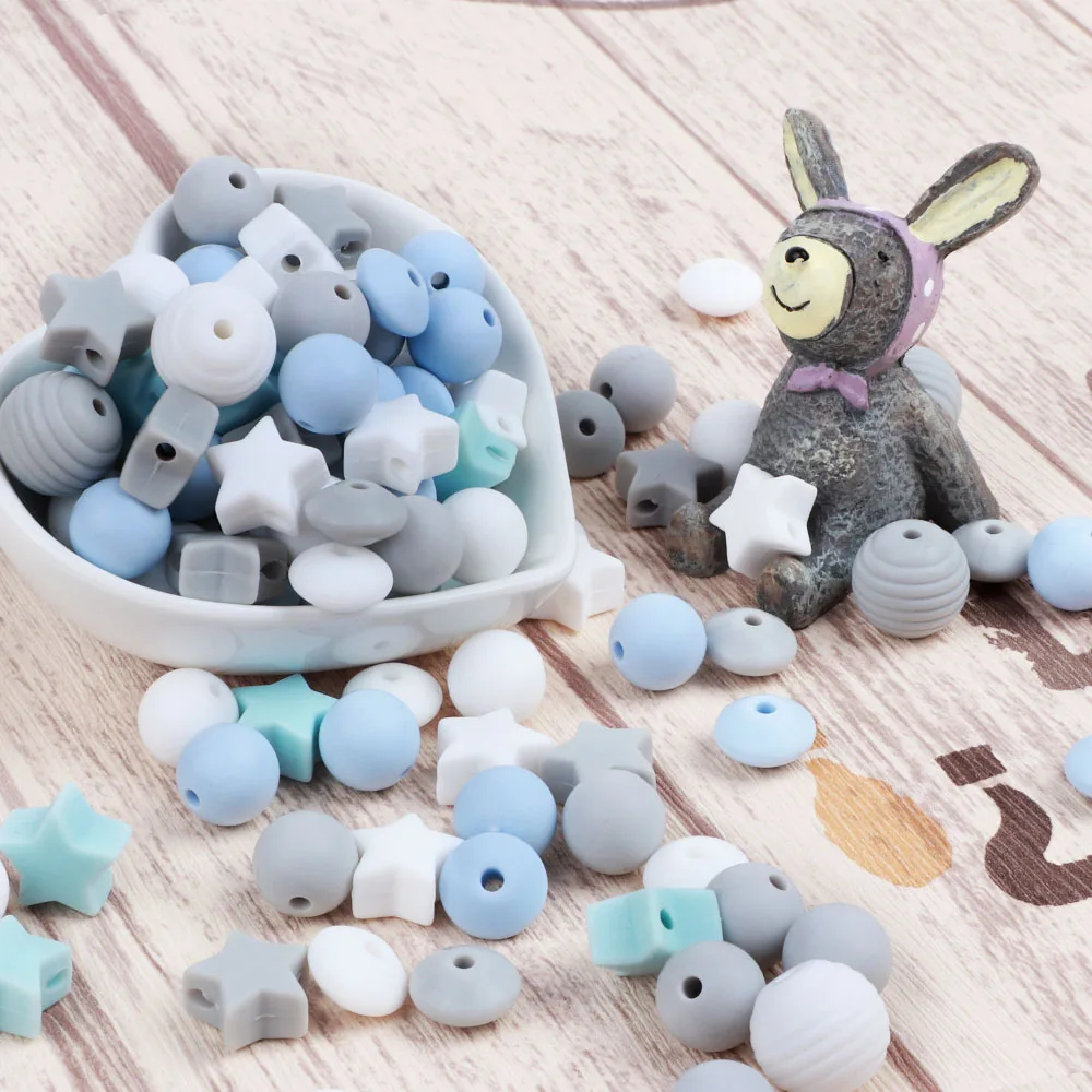 Набор силиконовых бусин TYRY.HU, 50 шт., комплекты спиральных бусин в форме звезды и чечевицы, Аксессуары для ожерелья, Детские бусины для прорезывания зубов сделай сам, безопасные игрушки, не содержащие БИСФЕНОЛ