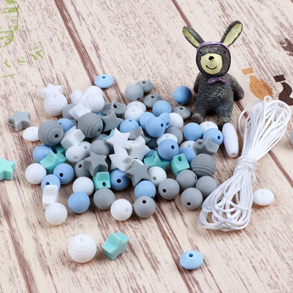Функция: Силиконовые Прорезыватели для младенцев,Вы можете создать красивые ожерелья для прорезывания зубов, сделать браслеты для кормления, соски, детские погремушки