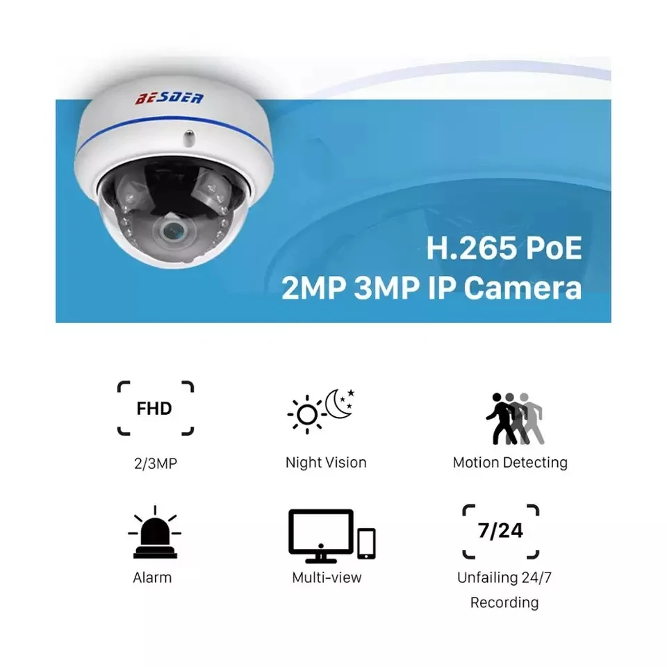 2MP 3MP 5MP аудио H265 IP-камера 2,8 мм Антивандальная 48 В POE камера P2P датчик движения RTSP оповещения по электронной почте POE купольная камера видеонаблюдения