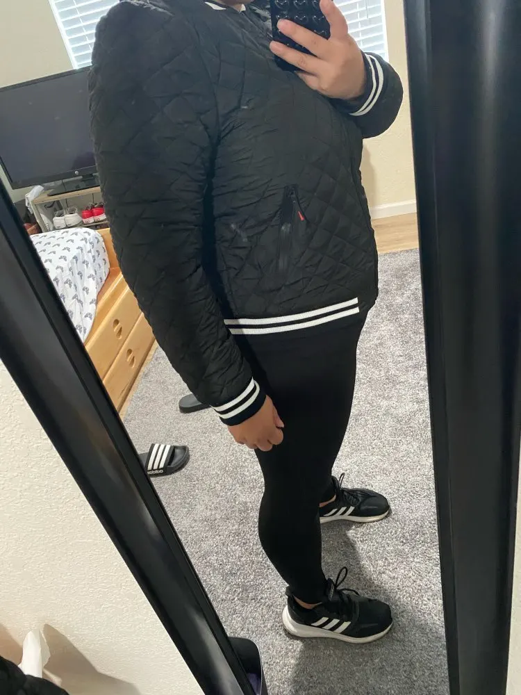 Курточка отличная. Всё как на фото и в описании. Ношу 48 р (ОГ -96 ). Почитав отзывы заказала XL, в груди узковато. Люблю свободно. Претензий нет. Пишу для тех, кто сомневается, как я , какой размер выбрать. Пошив отличный. Пришла очень быстро.