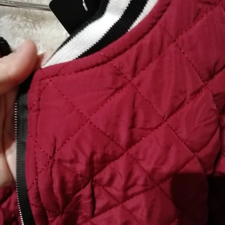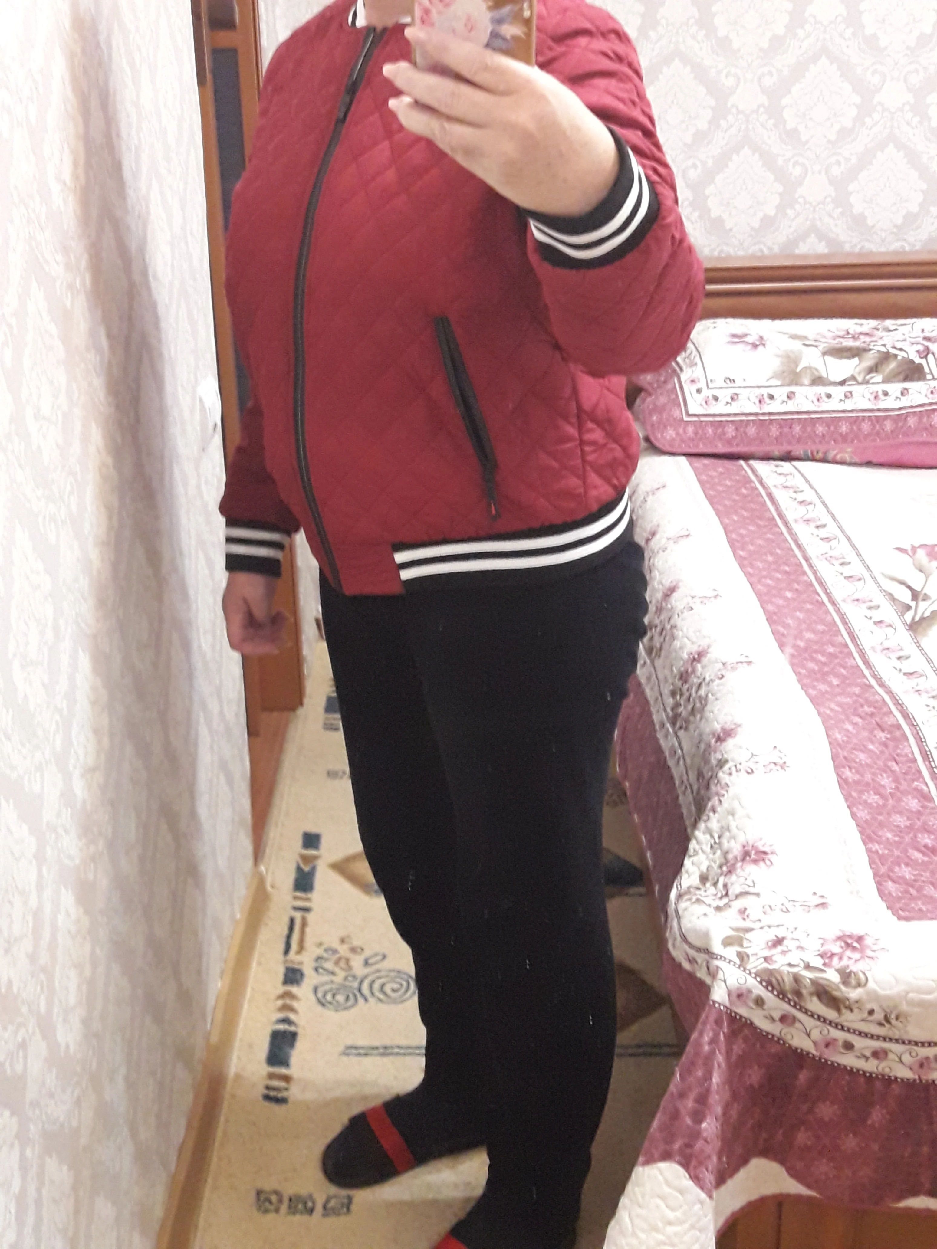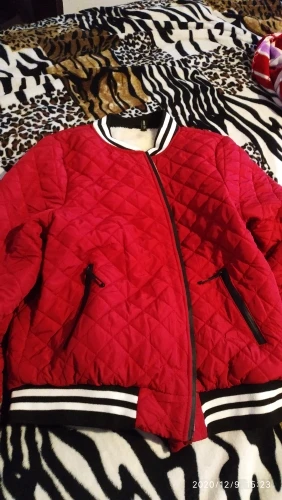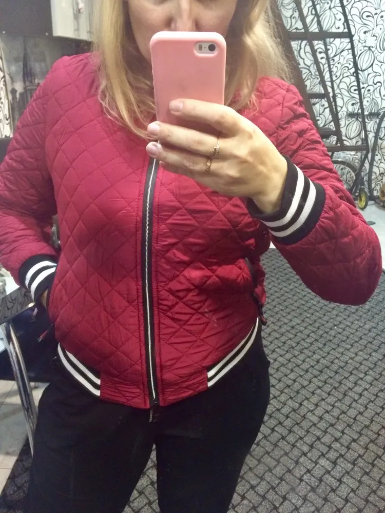 курточка нравиться, на тёплую осень,лёгкая,размер подошёл на 48 размер брала xl,рукава самый раз.,цвет не красный бордовый но тоже красиво,нитки не торчат,швы ровные.продавцу спасибо,.