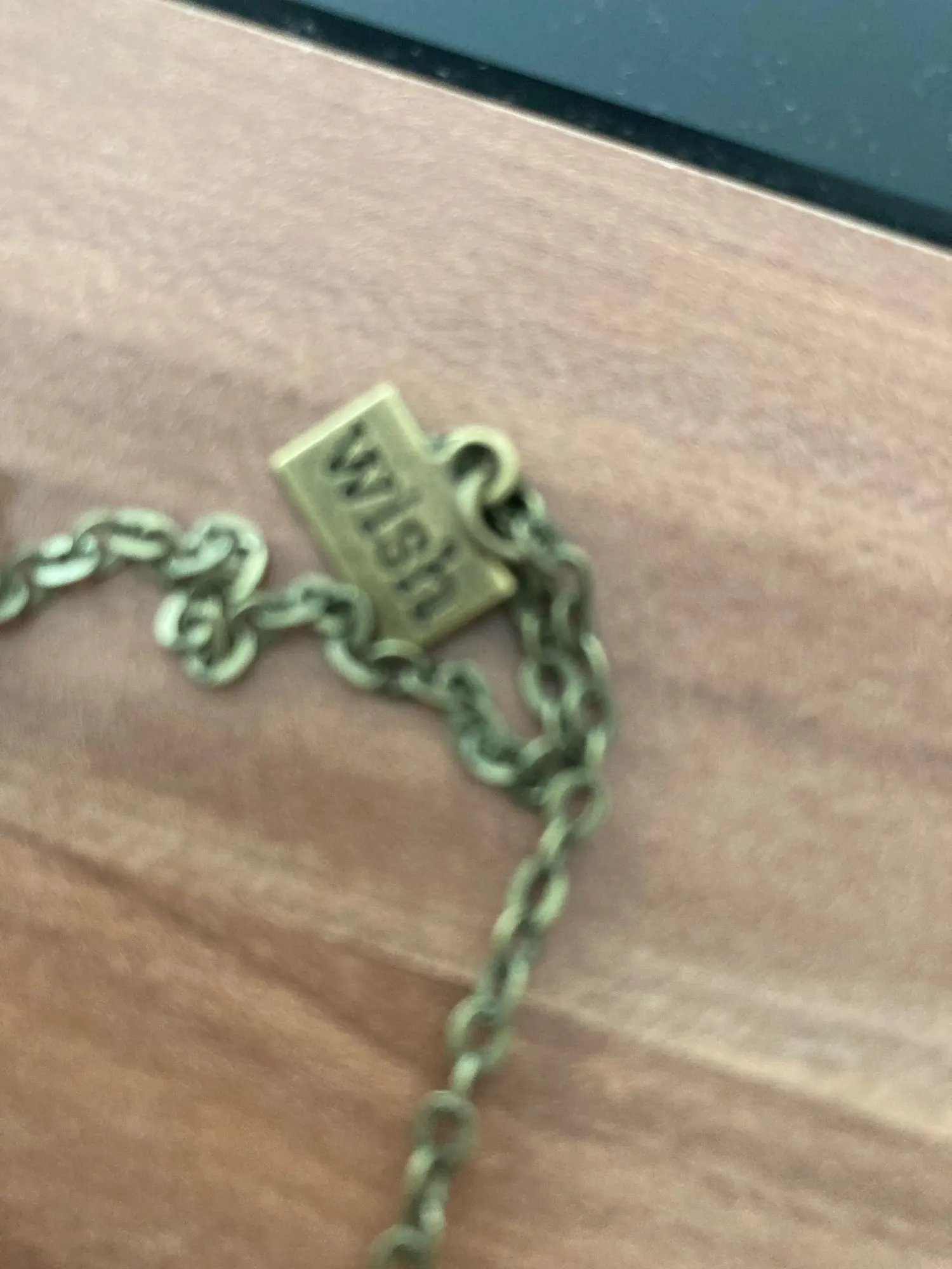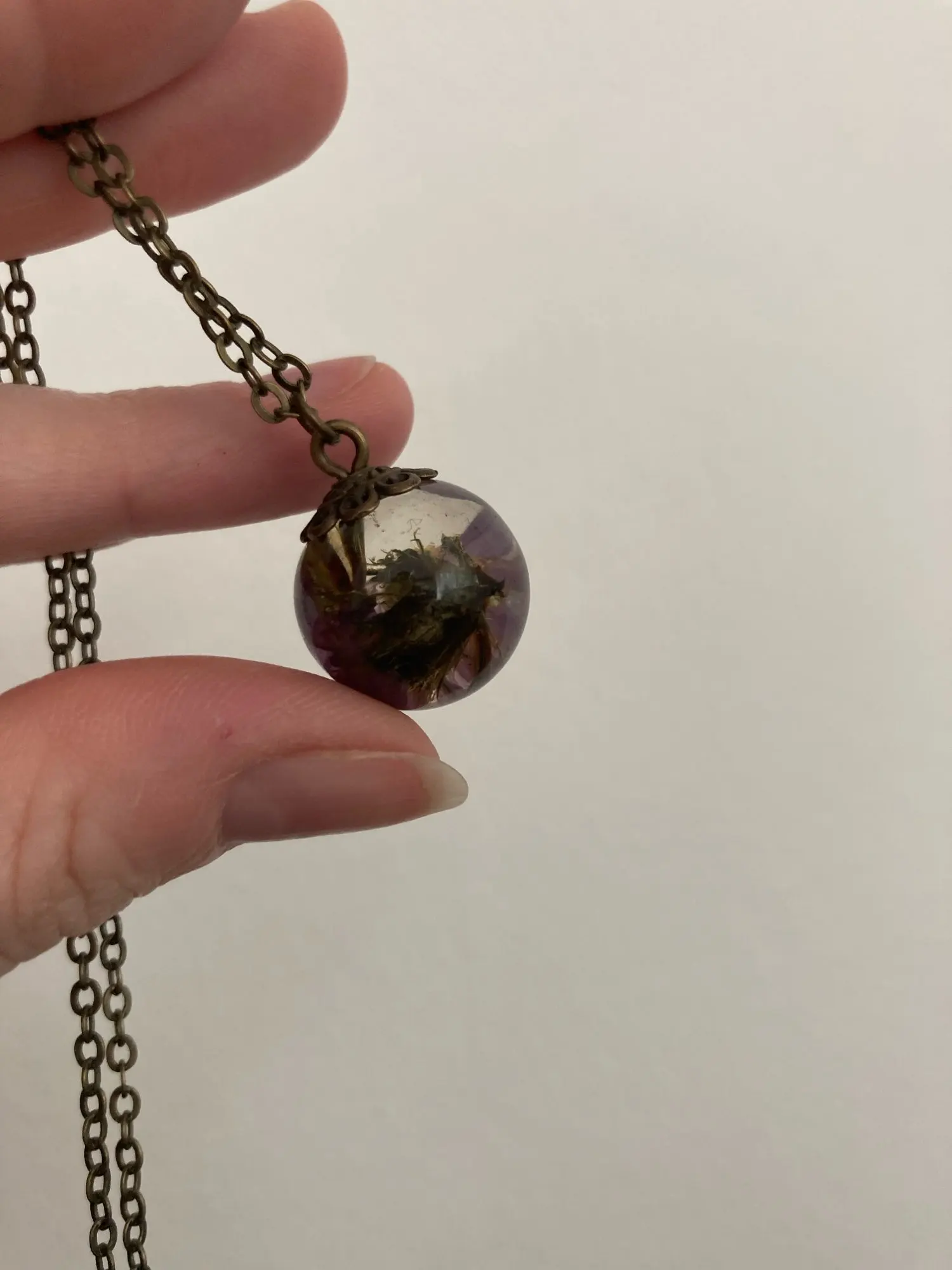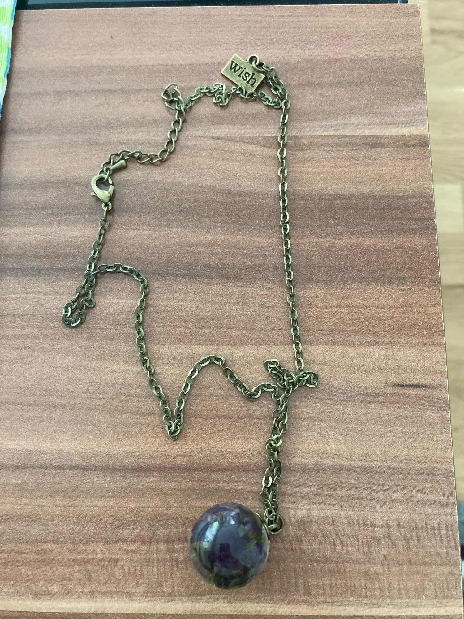 Красивая подвеска. Маленький стеклянный глобус с цветком внутри. Медная цветная цепь с небольшим щитом: «Wish».