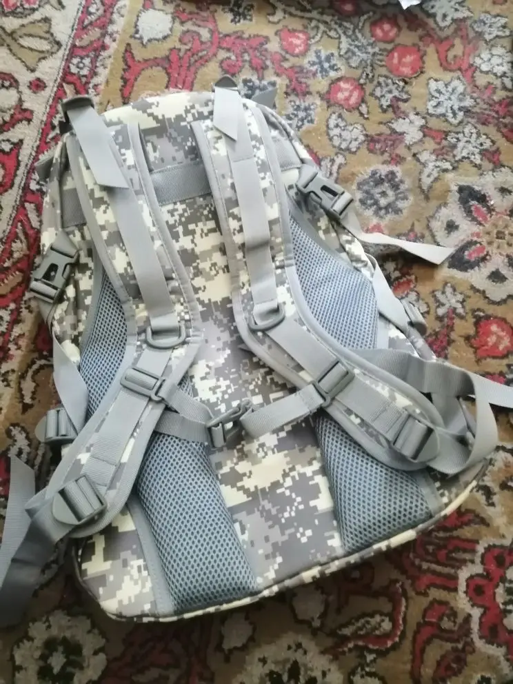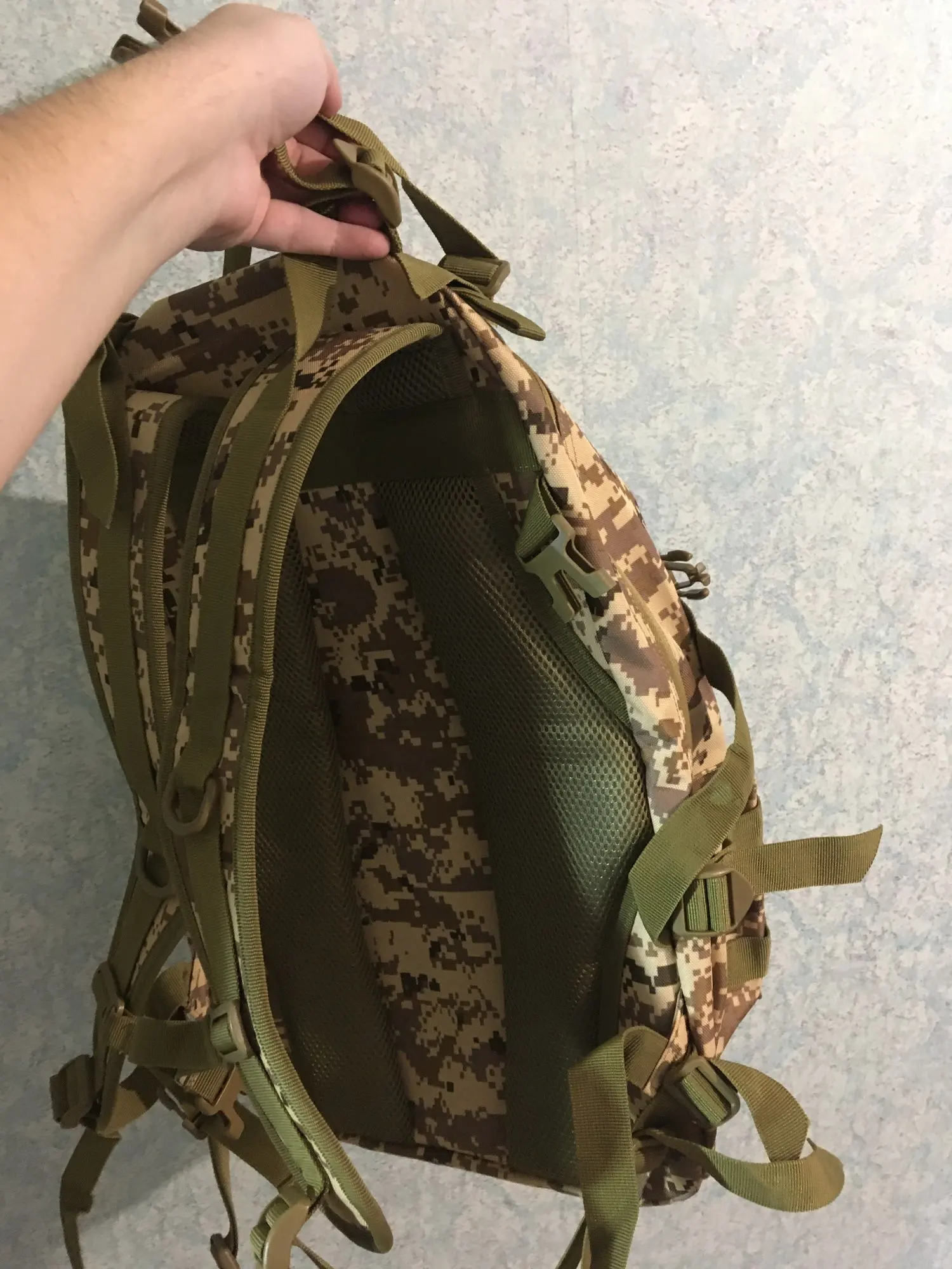 Быстрая доставка. Рюкзак высокого качества 40 л, прочные швы, удобное использование, 2 передних кармана с защитой от брызг молниями, высококачественные молнии с защитой от брызг, два больших боковых отделения, внутренний широкий и водонепроницаемый с 1 отделом с застежкой на ремне, ремешки для уменьшения размера, 2 передних флиса для наклеивания пластырей, 2 отверстия для гидратации шлангов в верхней части, камуфляжные с липучкой, бесконечная лента для зажима усилителей, в итоге хороший продукт очень высокого качества по своей цене, Я хотел бы иметь застежку-липучку с боковых отделов и некоторые другие карман с молнией или Морт типа. Вино в подарок резиновые накладки деталь от продавца