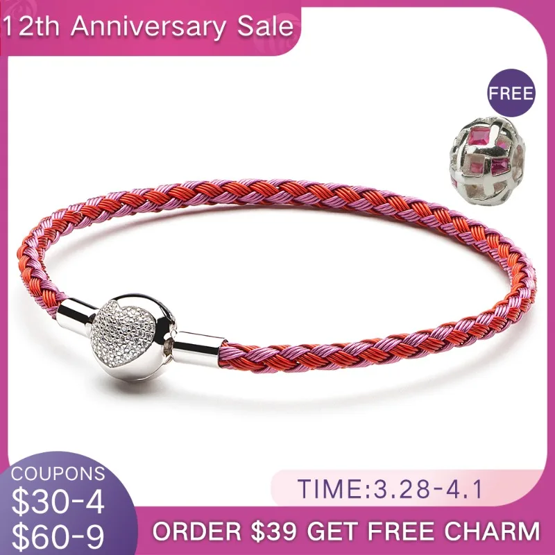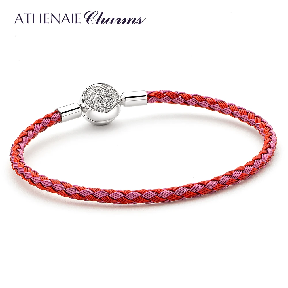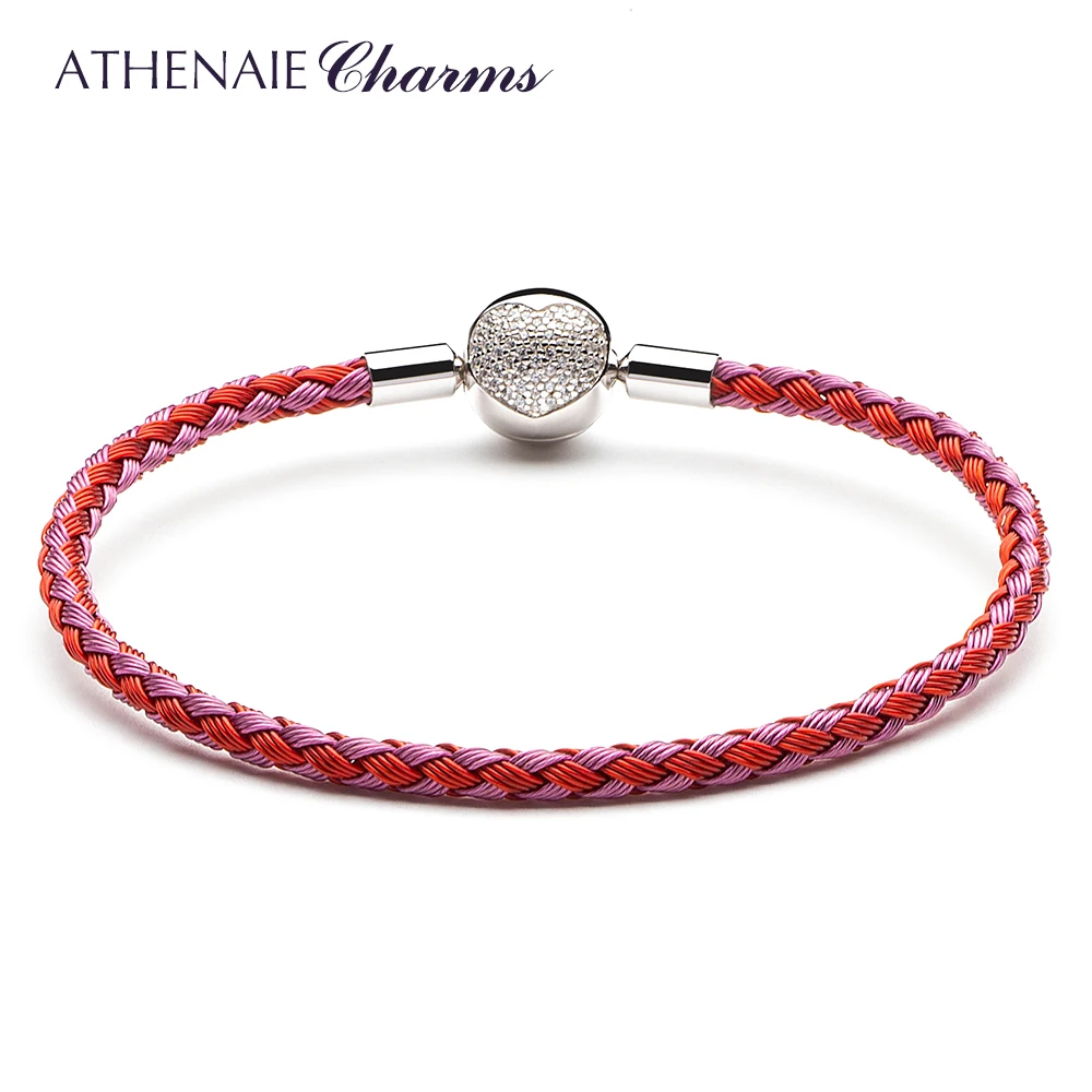 Женский браслет ATHENAIE, разноцветный браслет из стерлингового серебра 925 пробы с застежкой в виде сердечек и сердечек, Подарочный красный и розовый