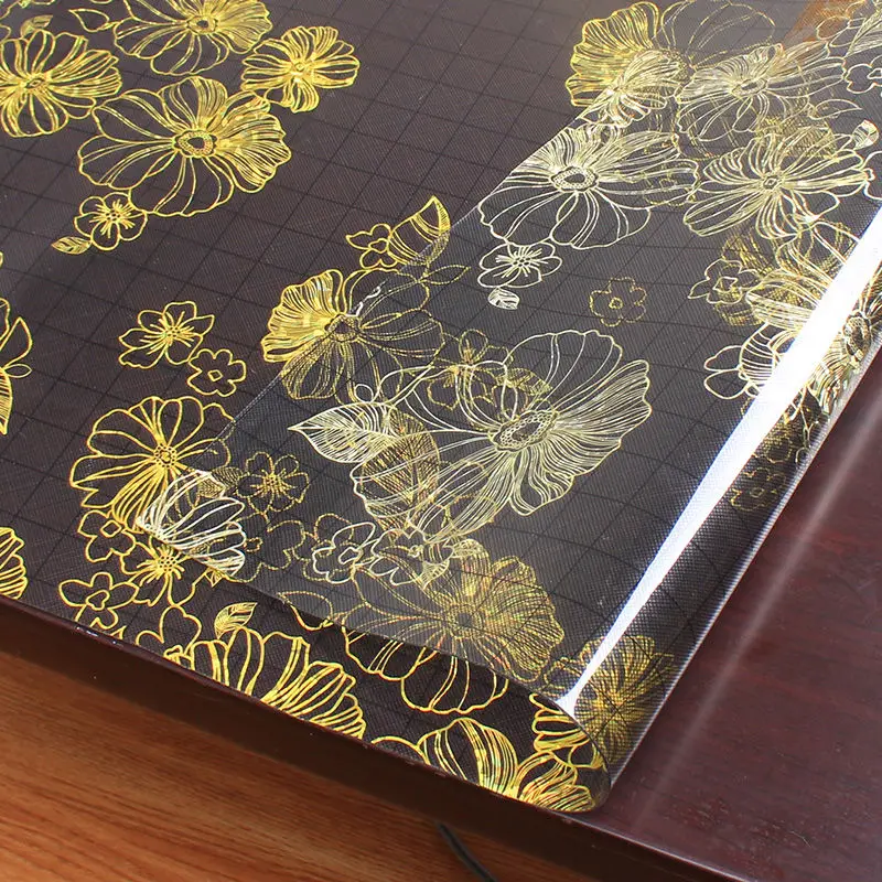 Скатерть из ПВХ, водонепроницаемая, с золотым цветком, 1,2 мм