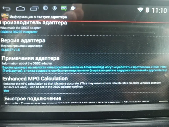 Чтение диагностических кодов неисправностей, как общих, так и конкретных производителей, и отображение их значения (более 3000 общих кодов в базе данных).