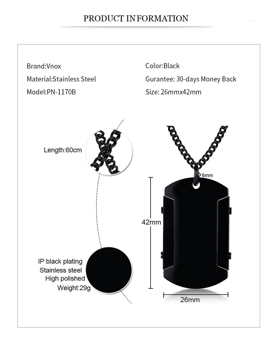 Vnox ожерелья с идентификационной биркой из нержавеющей стали, подв...