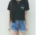 Женская Сексуальная футболка hipster ALIEN, с карманами и надписью, гранж футболка хлопок, свободный покрой, Tumblr футболки летние топы Стиль пуловер USD 7,74/Шт.