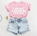 Забавная серая футболка с надписью «I AM NOT A MORNING PERSON», Женская Сексуальная футболка, Летние Стильные футболки, модная одежда, розовая футболка с надписью «Love» USD 7,64/Шт.