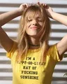 Женская футболка с надписью «I'm a Happy Go Lucky Ray of Sunshine», желтая Повседневная футболка с забавными рисунками USD 9,40/Шт.