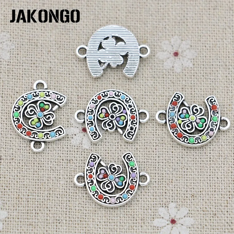 JAKONGO посеребренные соединители в форме подковы с кристаллом клевера для изготовления ювелирных изделий Аксессуары для браслетов DIY 15x20 мм