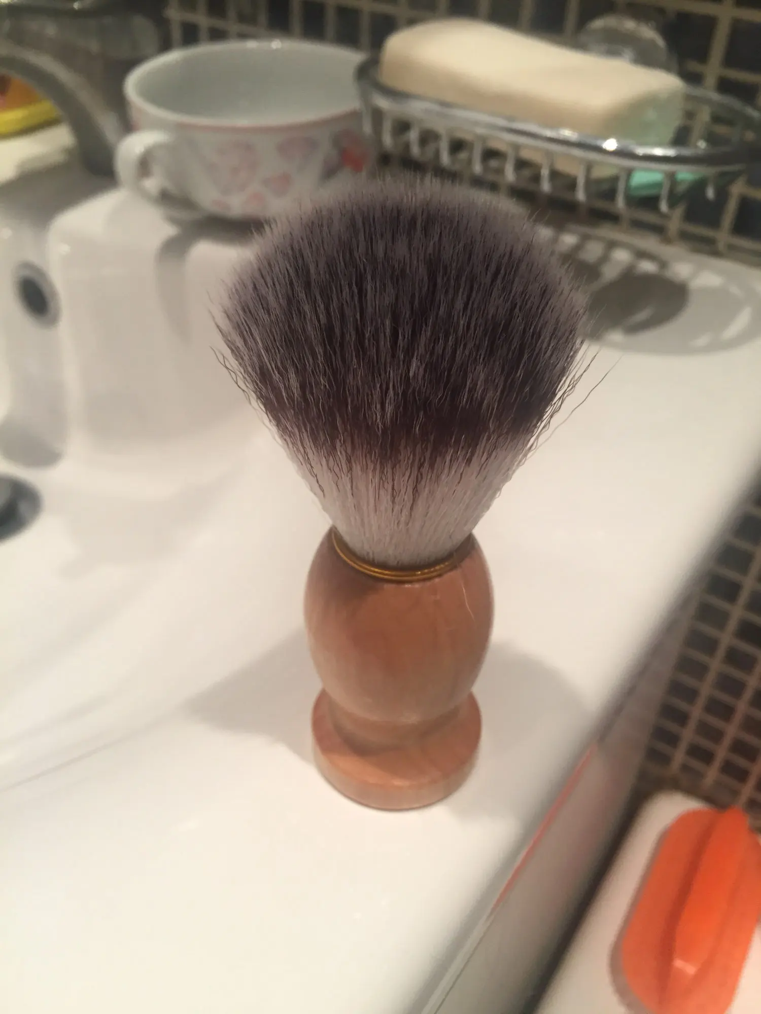 Отличный помазок, даже не заметно по ощущениям, что искусственный.