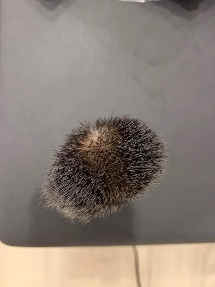 Помазок мягкий, пушистый. Правда старый натуральный мне нравился больше, хоть и был жёстче. Когда ошпарил новый помазок кипятком, он завонял краской. Когда остыл, запах исчез.