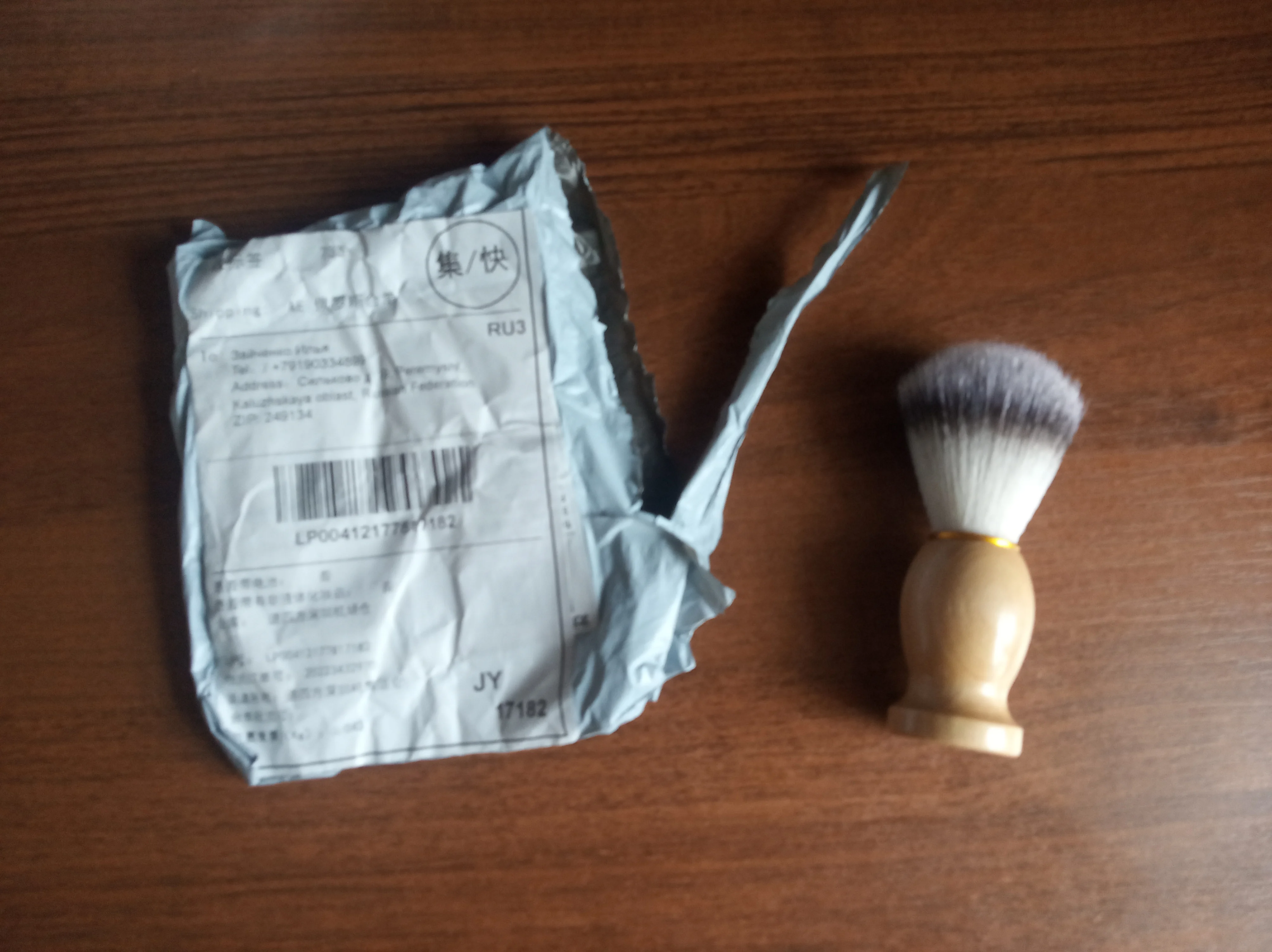 Шло долго, без трека. Качество соответствует цене, зачем купил хз. Буду с клавы пыль выметать. При всём при этом, в наших магазинах видел хуже и дороже. Вообще пользоваться можно если вы не успели ёбнуться на теме бритья) Помазок с нормальным размером, пучок не три волосинки, щетина синтетика, мягкая, но пену взбивает вполне себе хорошо,ручка лёгкая, как пустая, дерево покрыто лаком, ворс не полез при первом использовании, тесте. Функции выполняет, качество отвращение не вызывает, за 170р. очень даже годно сделан, но конечно же не для фанатов такие буджетки.