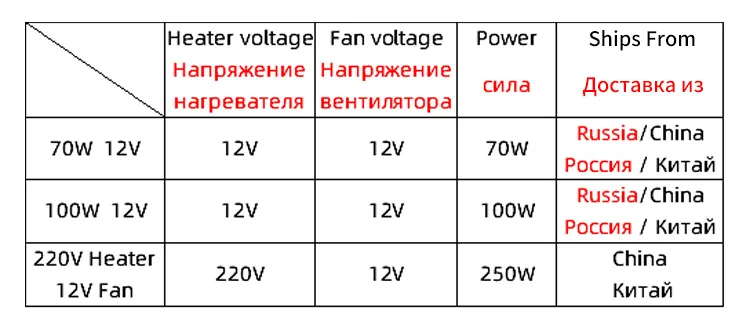 Страна: PT Ships From: China Specification: 220vHeater 12vFan Доставка: Standard Shipping 16.02.2021