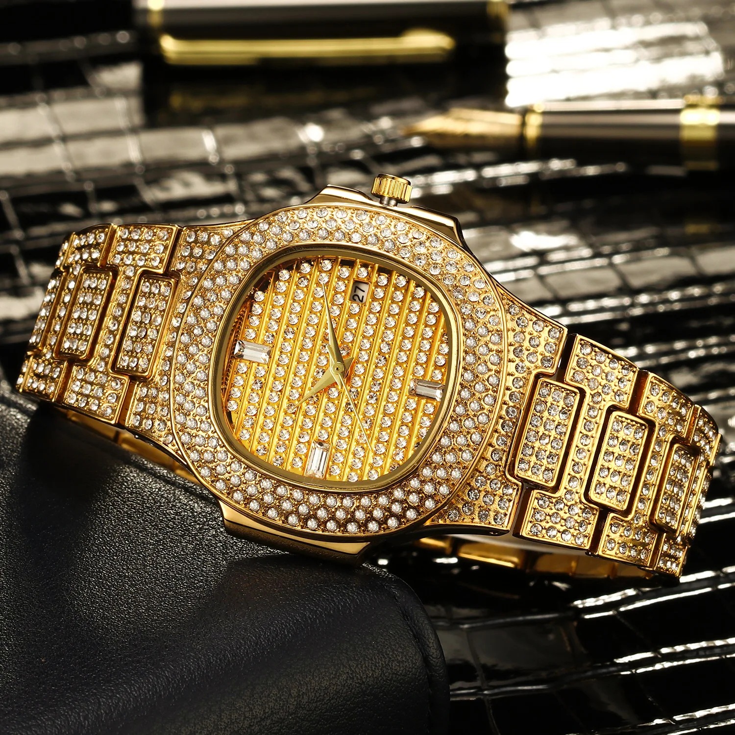 Мужские кварцевые часы с бриллиантами и календарем, часы со льдом, ...