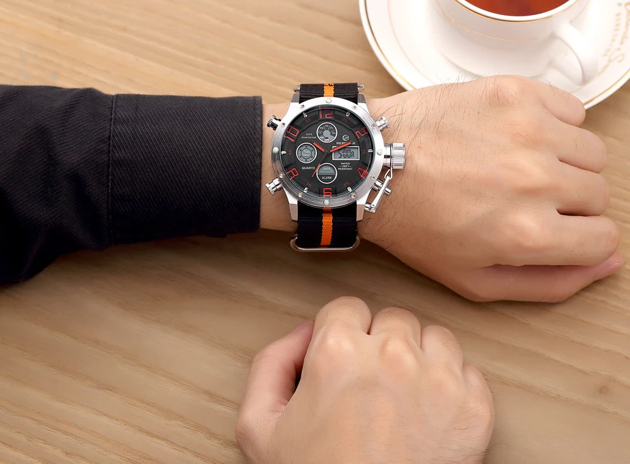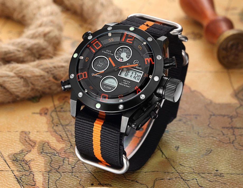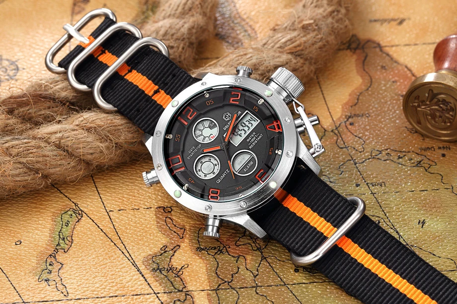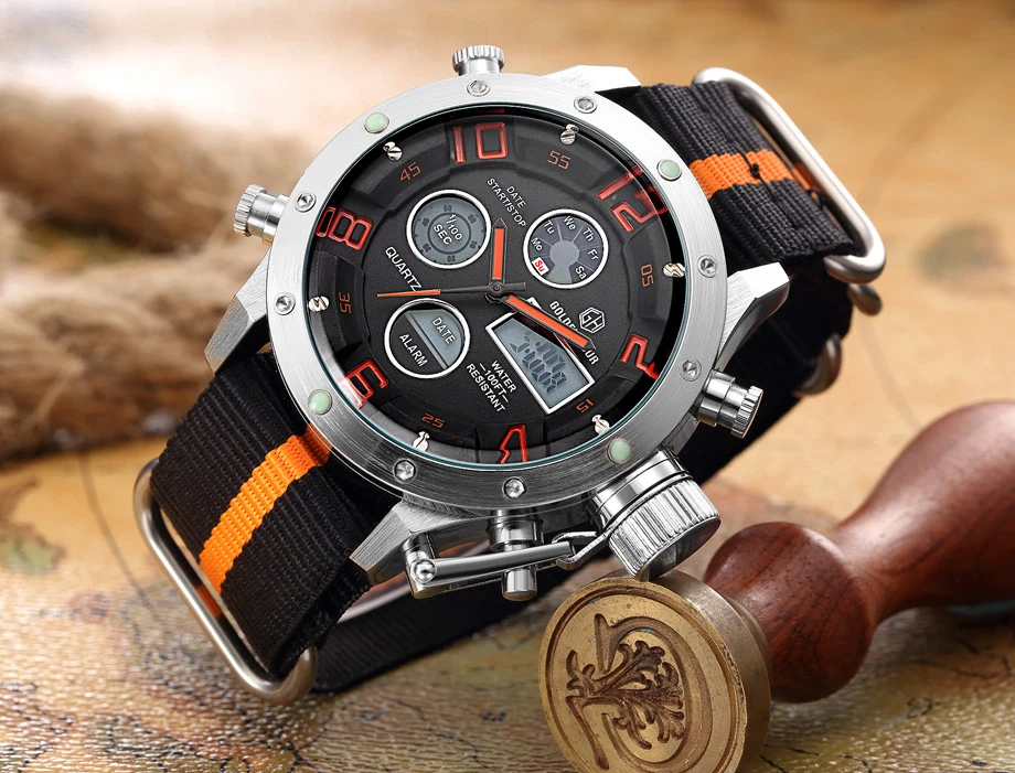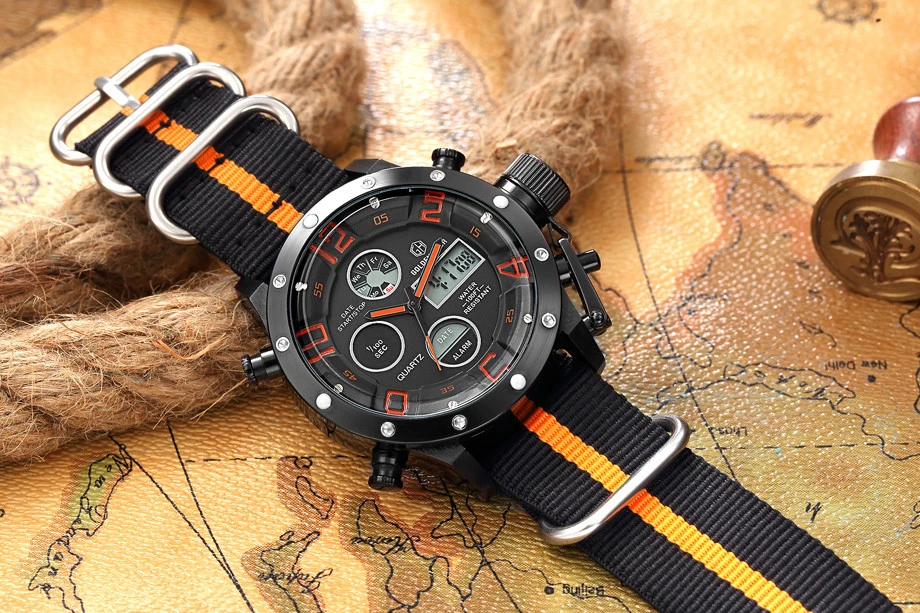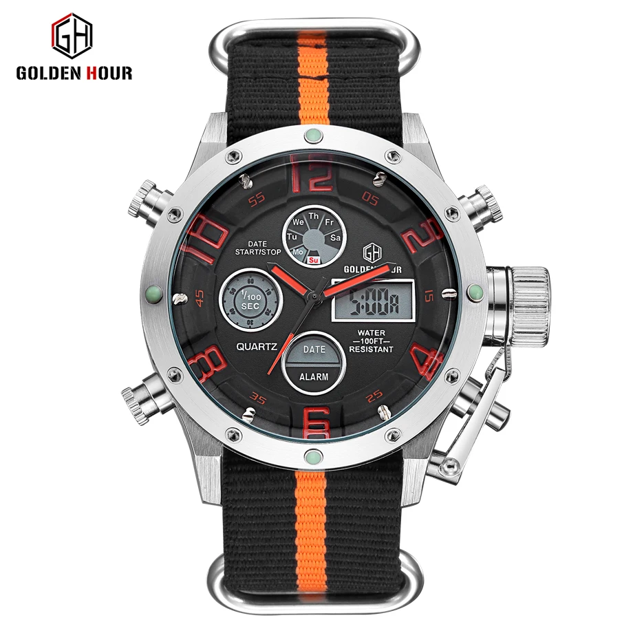 Часы мужские кварцевые, с цифровым аналоговым дисплеем и светодиодный ным дисплеем