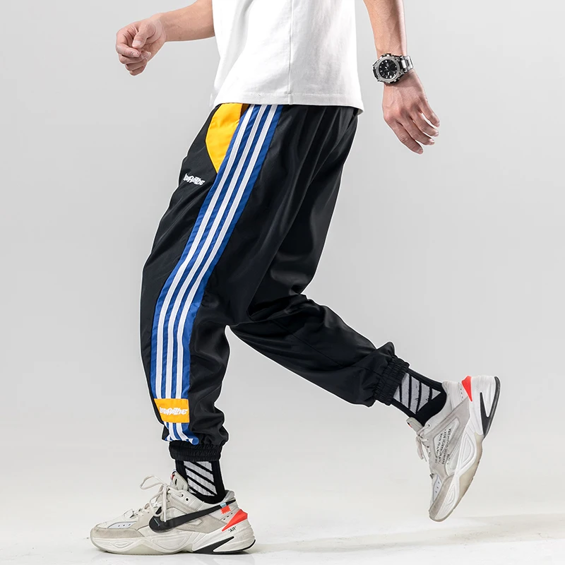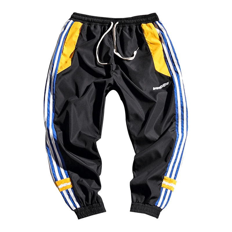 Мужские брюки-карго BINHIIRO, черныеоранжевые повседневные брюки-карго из хлопка и полиэстера с принтом, полной длины, с карманами на шнурке