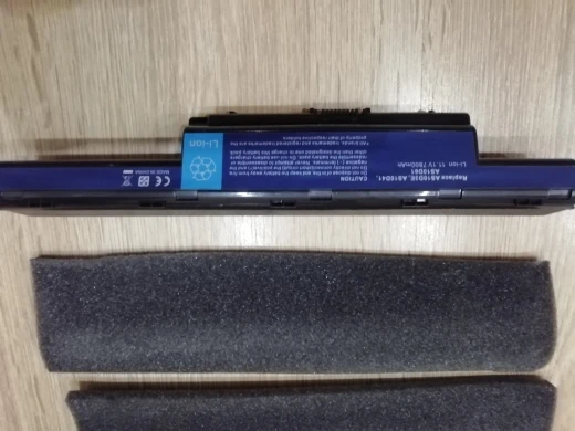 Аккумулятор пришёл в мятой упаковке, но целый. Я заказывал E732ZG, а на этом аккумуляторе маркировки нет, в гнездо ноутбука он полностью не входит, один край его выпирает. При рабочем положении ноутбука аккумулятор выпадает из установочного отверстия. Пришлось фиксировать его скотчем (смотри снимки), в данном положении он работает. После проведения трех циклов заряд-разряд, 20%-100%, аккумулятор работает 50 минут и разряжается от90% до19%. Это нормально для аккумулятора 7800Ah? Считаю, что аккумулятор не соответствует заявленному, прошу вернуть часть денег.