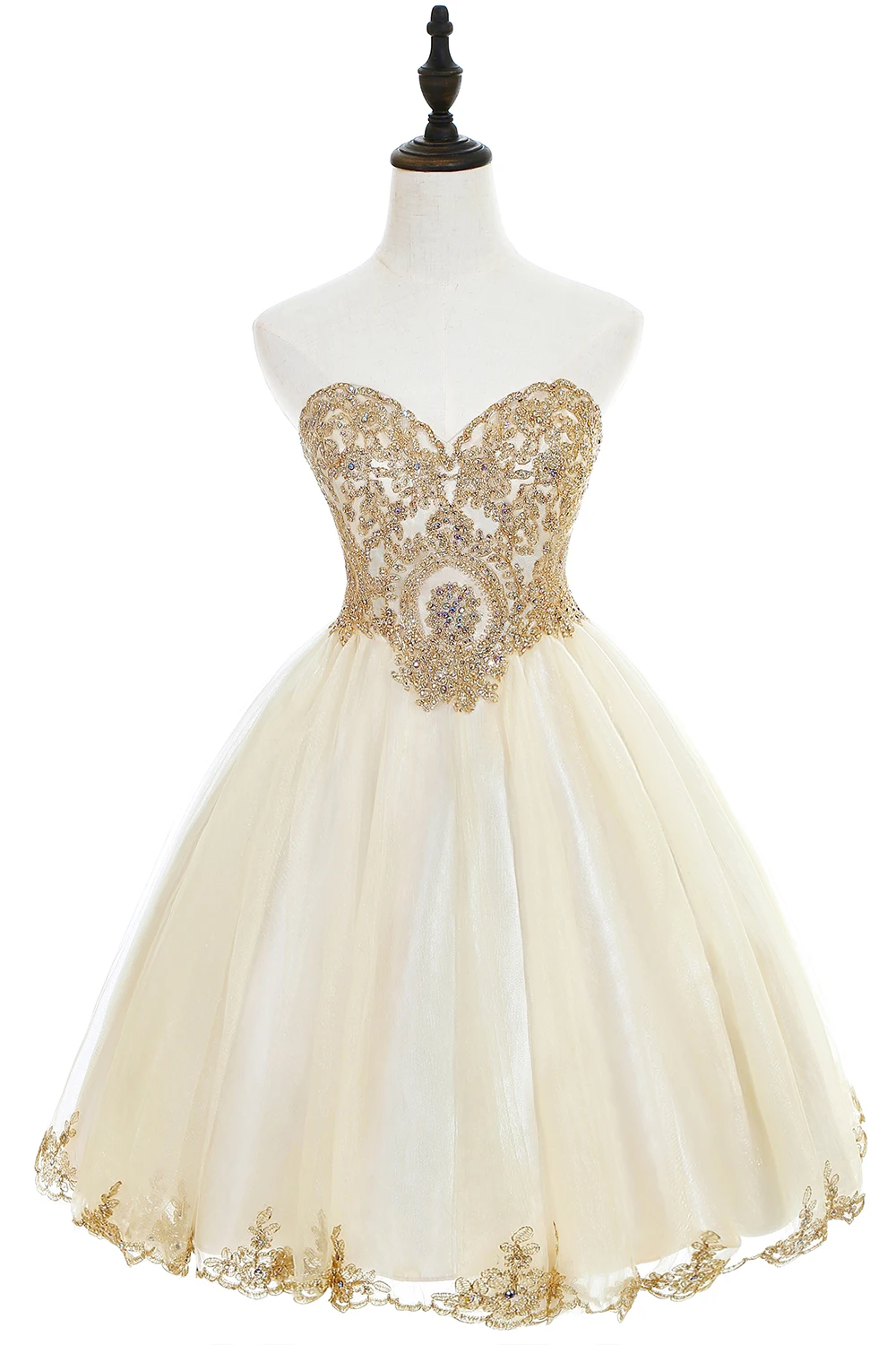 Элегантное Тюлевое короткое платье цвета шампанского для выпускного вечера платье без рукавов с вырезом сердечком vestidos de gala в наличии