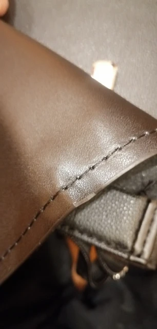 Сумка пошита аккуратно. Запах приятный, как у натуральной кожи. Заказ пришел быстро, отслеживался. Упакован в три пакета. Доставлен без повреждений.