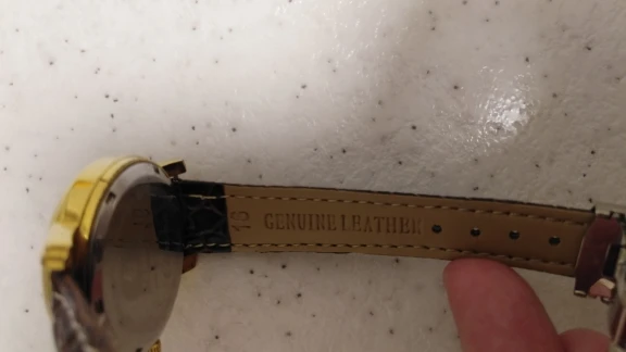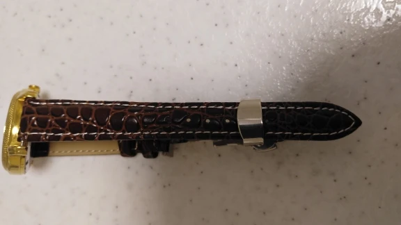 ремешок по факту не очень похож на фото, представленные продавцом. верх искусственный на вид мне не понравился, внутренняя часть гладкая натуральная кожа (надпись есть). носить не буду т.к. ошибся с размером, поэтому про эксплуатацию не расскажу. застёжку такую больше брать не буду, не мое. прилагаю фото на скорую руку. с продавцом не общался. всем спасибо.