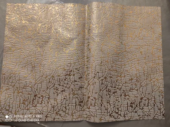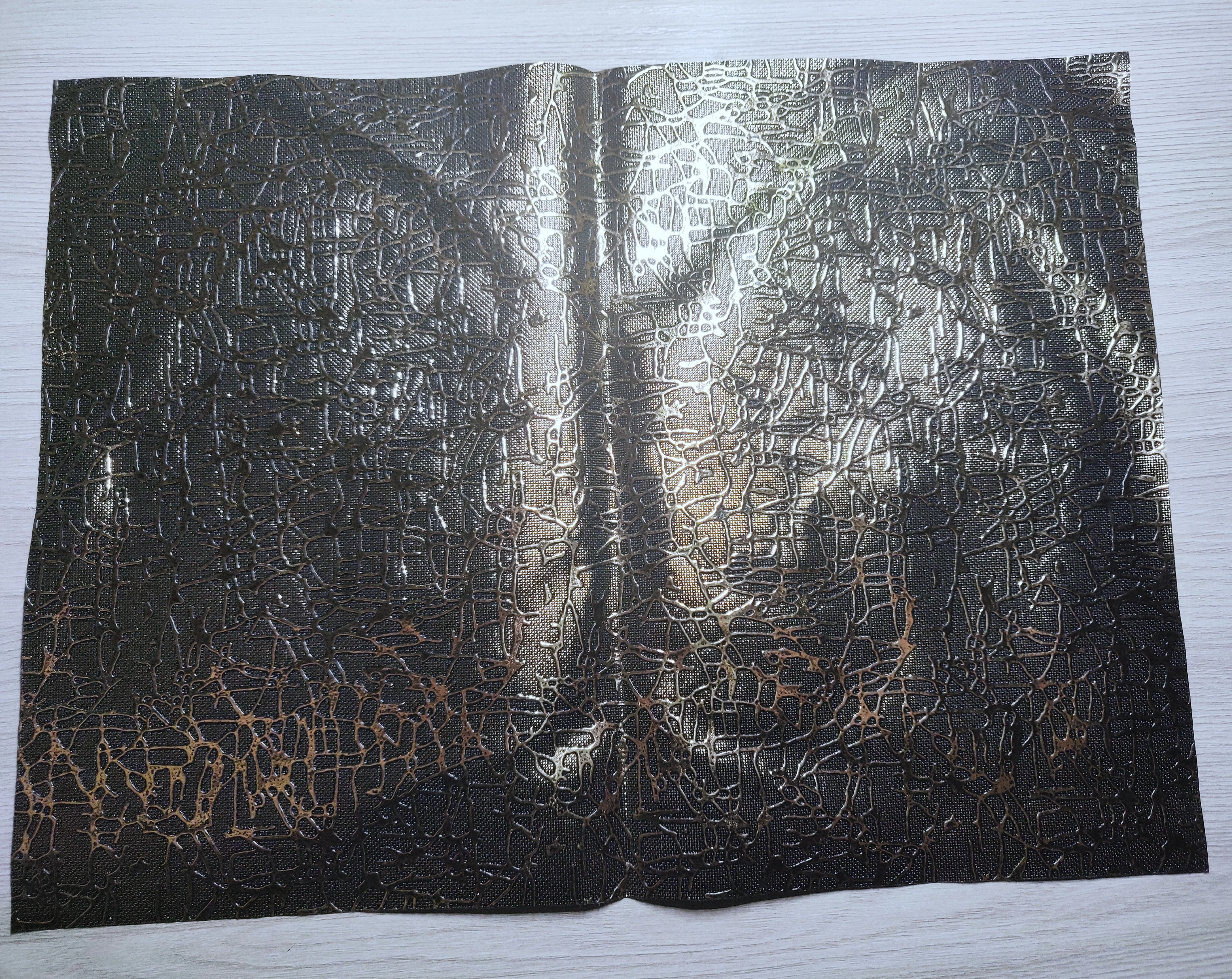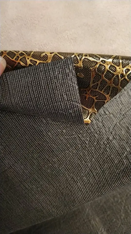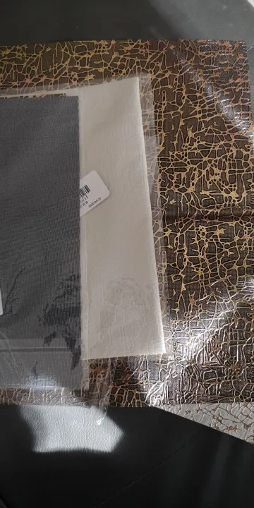 Дошло быстро. Брала для заплаток на бежевые кроссовки. Ткань сверху похожа на клеенку, но она на тканой основе. Крепкая. Клея на обратной стороне нет.