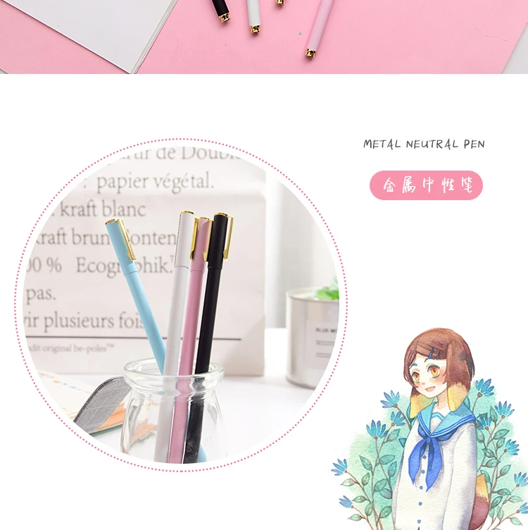 24 шт. простой тонкий стержень металлический гелевый ручка корейски...
