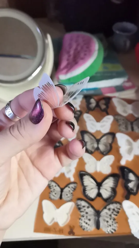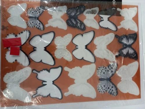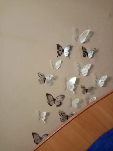 бабочки красивые. прилетели быстро. но скотч держит не на любых поверхностях. магнитов не было. но мне они и не нужны